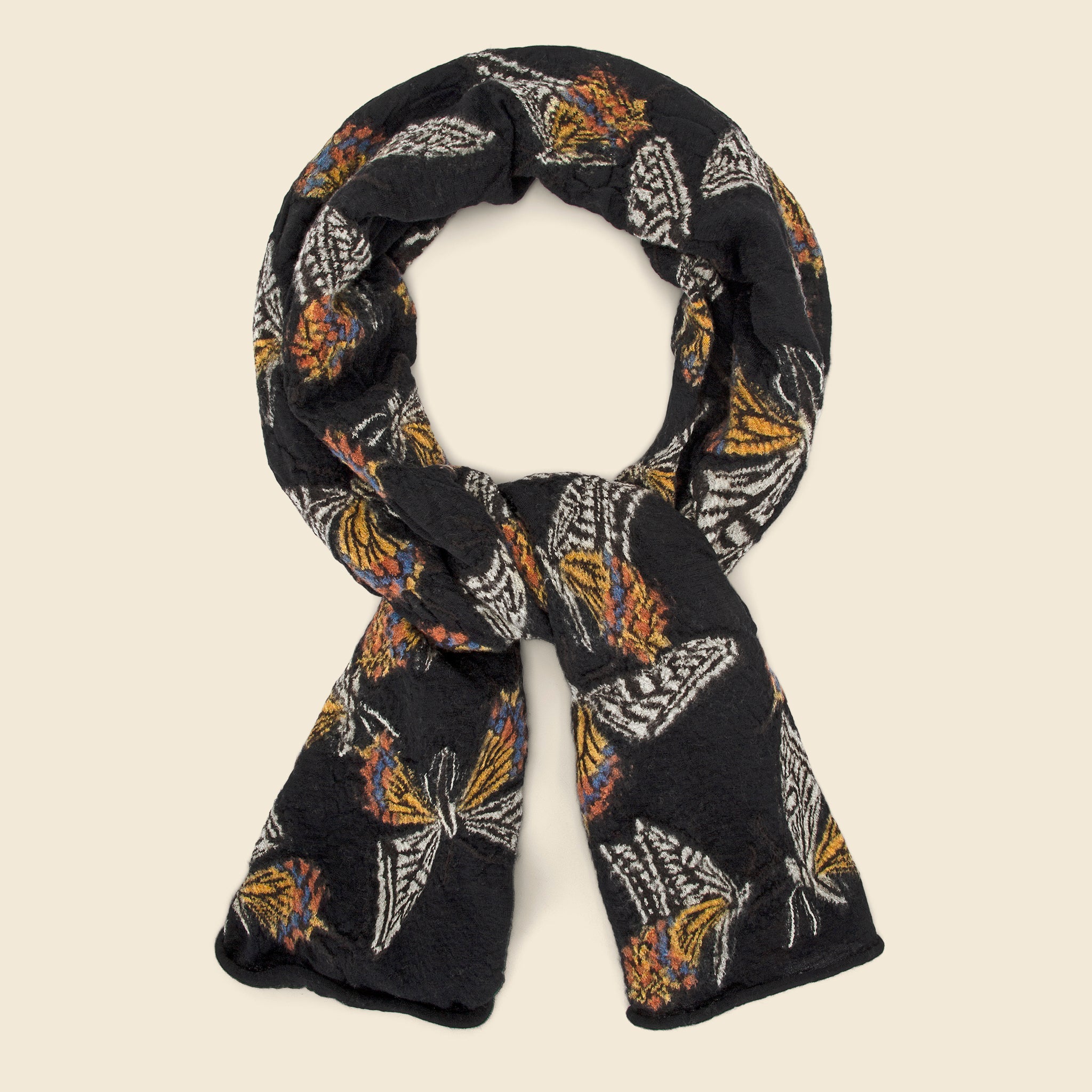 Fulling Wool HAPPY Scarf BUTTERFLY - Black