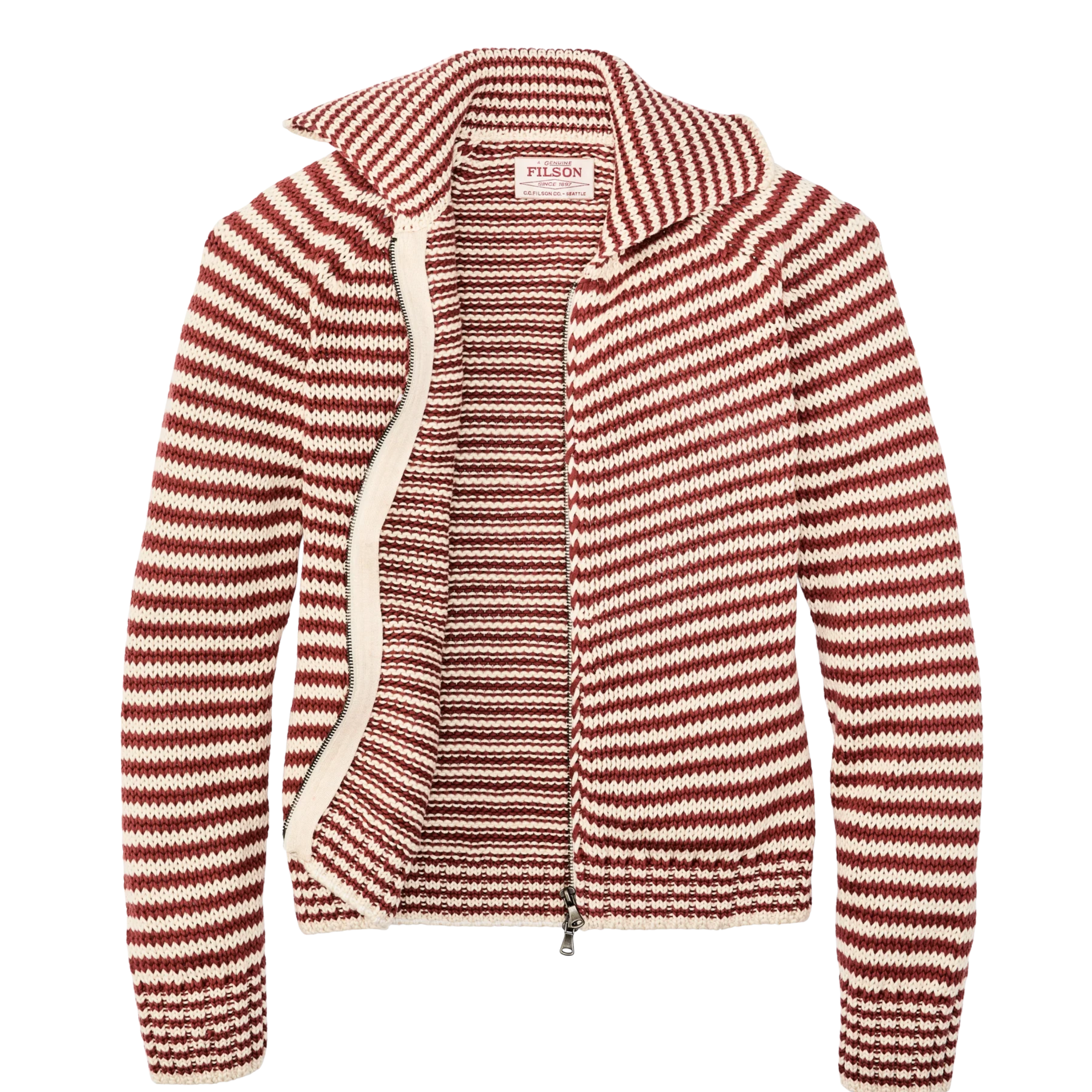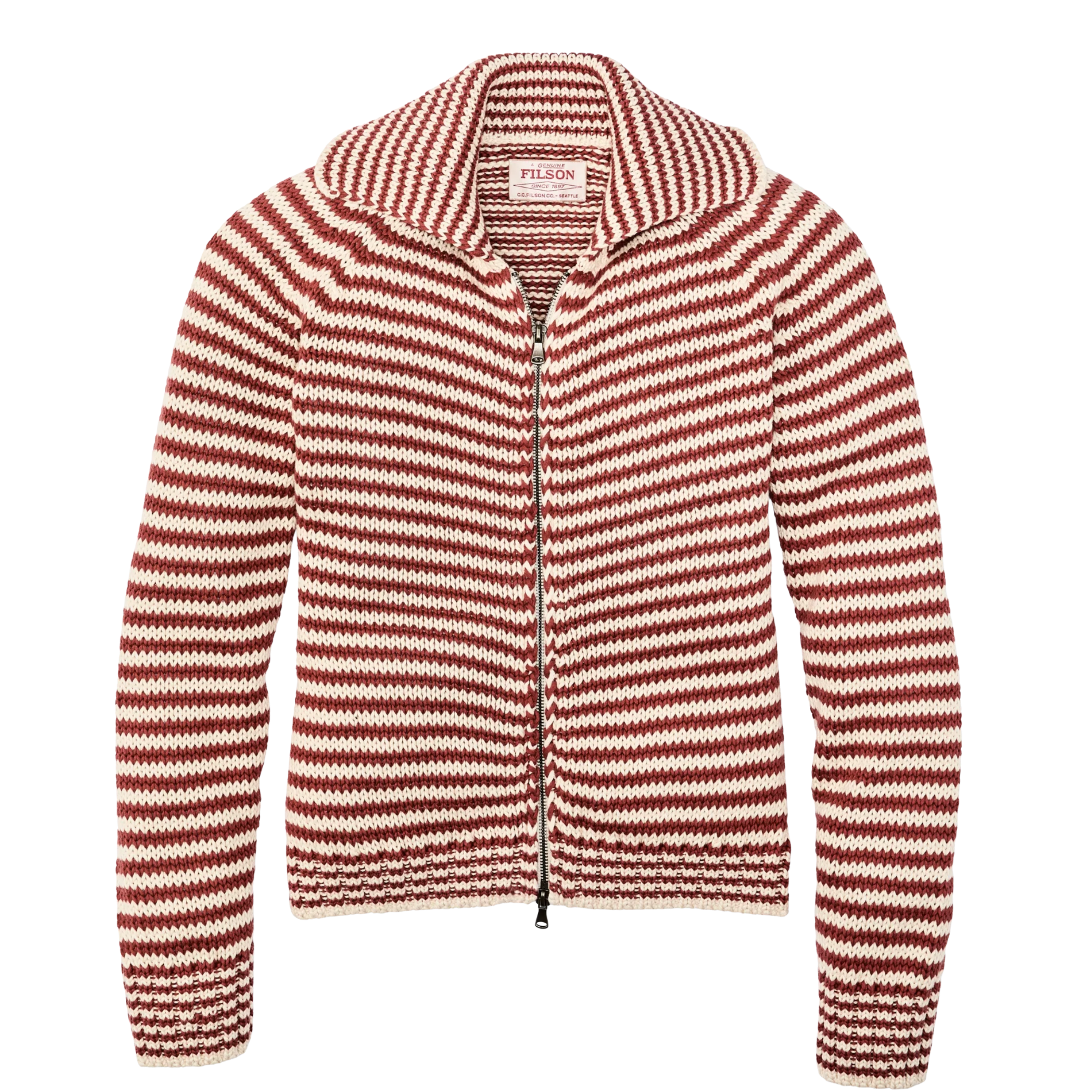 Cotton Zip Cardigan - Brick Stripe