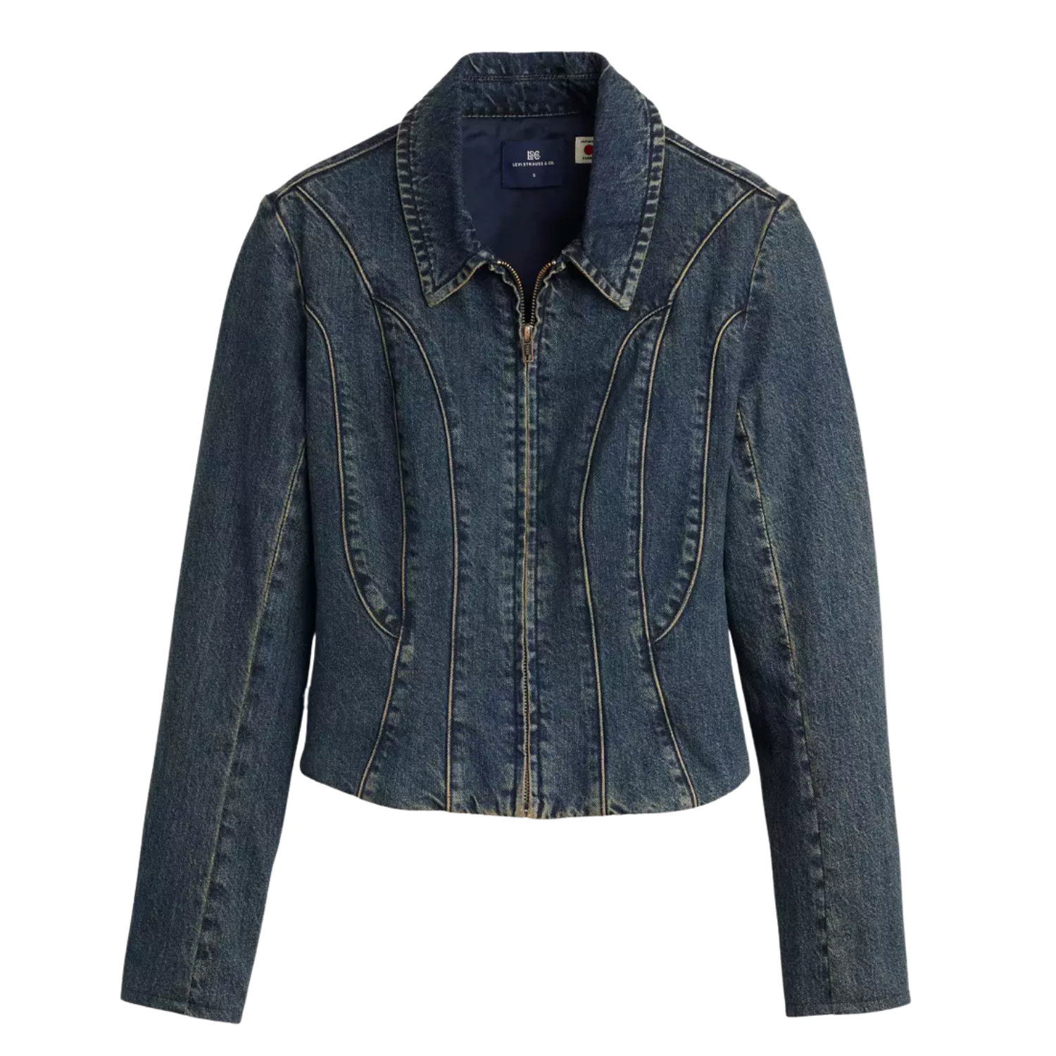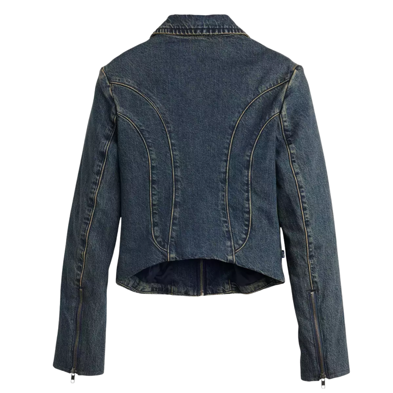 Fiona Denim Wrap Top - Medium Indigo Stripe