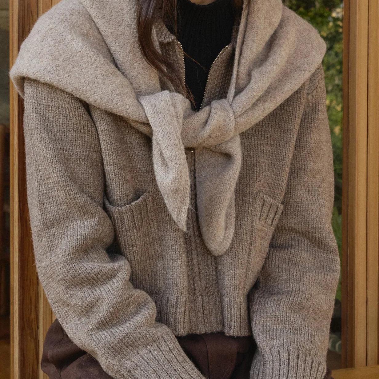 SPEAKEASY Embroidery Knit Hoodie - Ecru