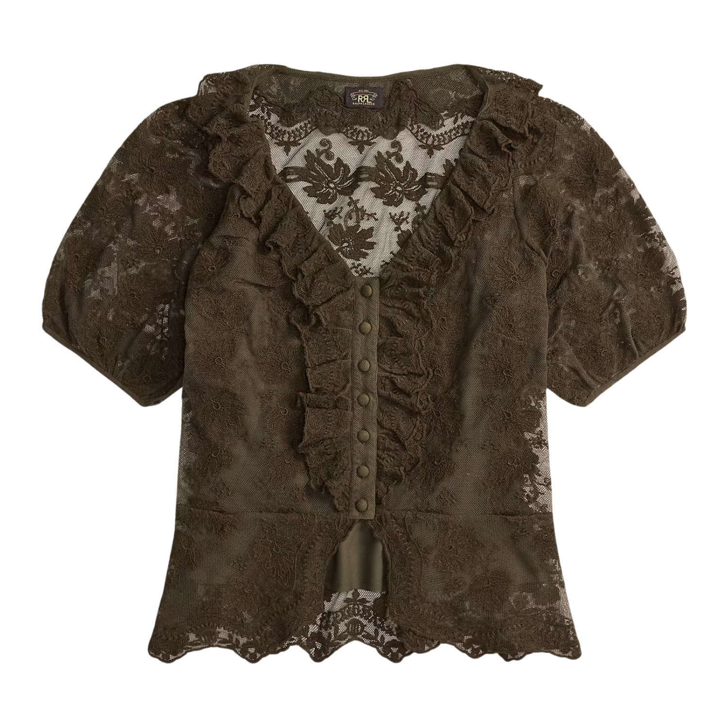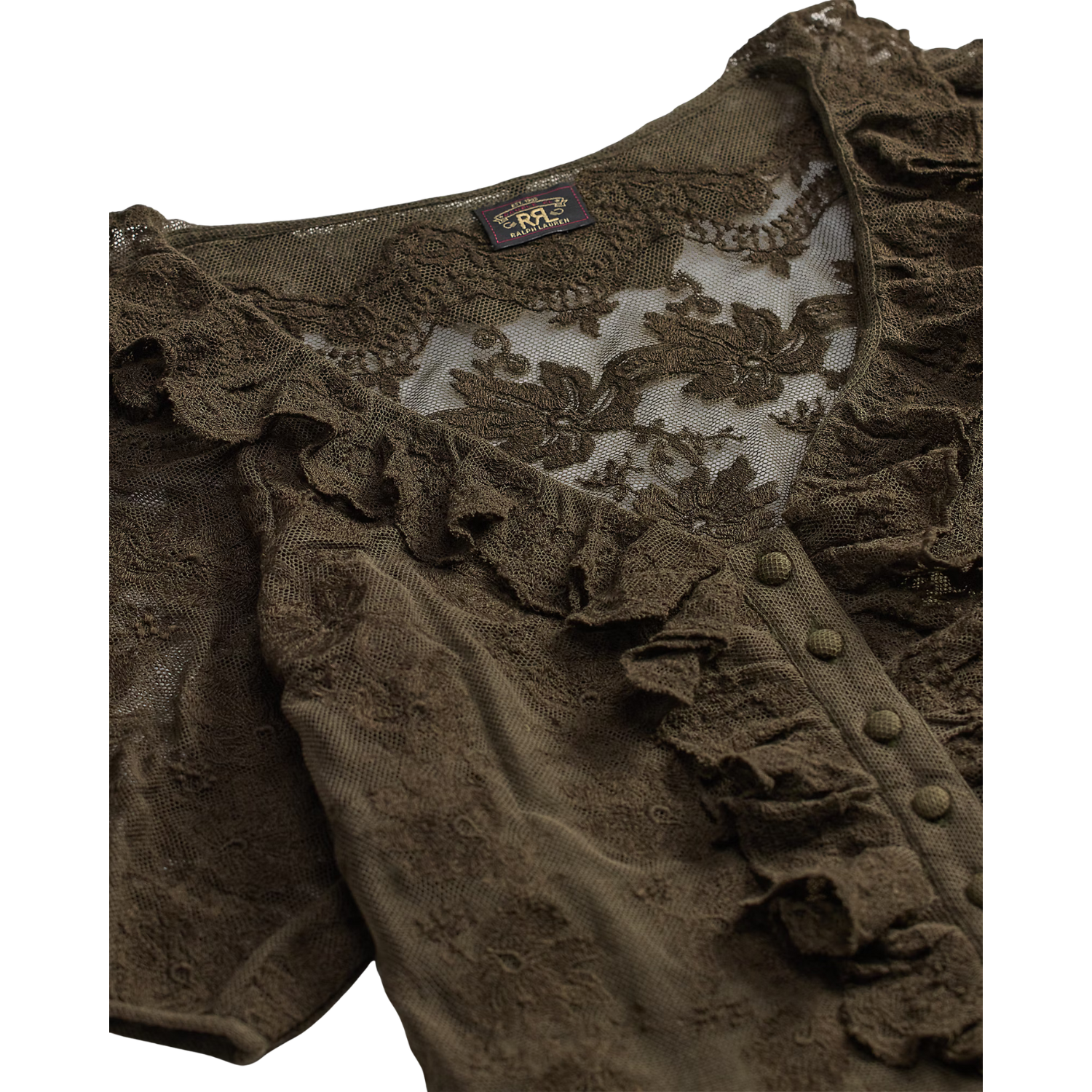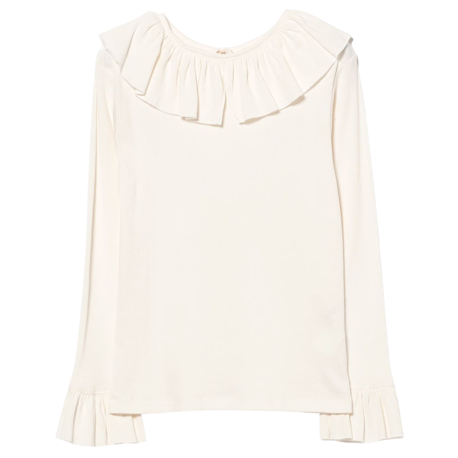 Rib Knit Ruffle Gathered Shirt - Ivory