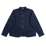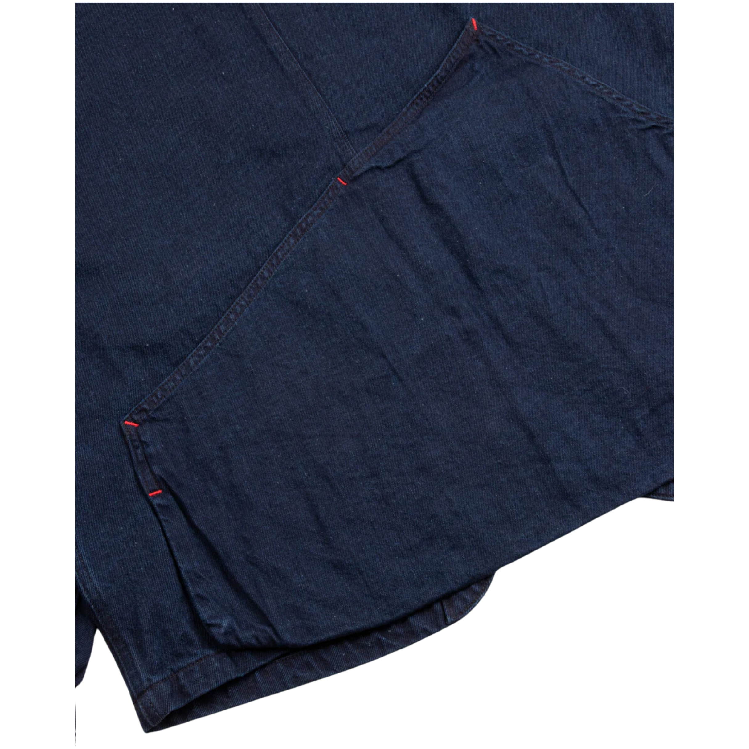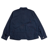 The Ringoman Denim Jacket is a classic Kapital silhouette that has a perfectly relaxed fit that runs true to size. Styled with a large back map pocket and two gusseted hand pockets. Dropped shoulders & roomy body allow for movement, while the tailored 4-button front placket add a tailored shape. Mismatched round patch pockets on the front provide lots of stow capacity, and finishing details of copper rivets & red stitches add highlights to the very deep indigo fabric.
