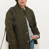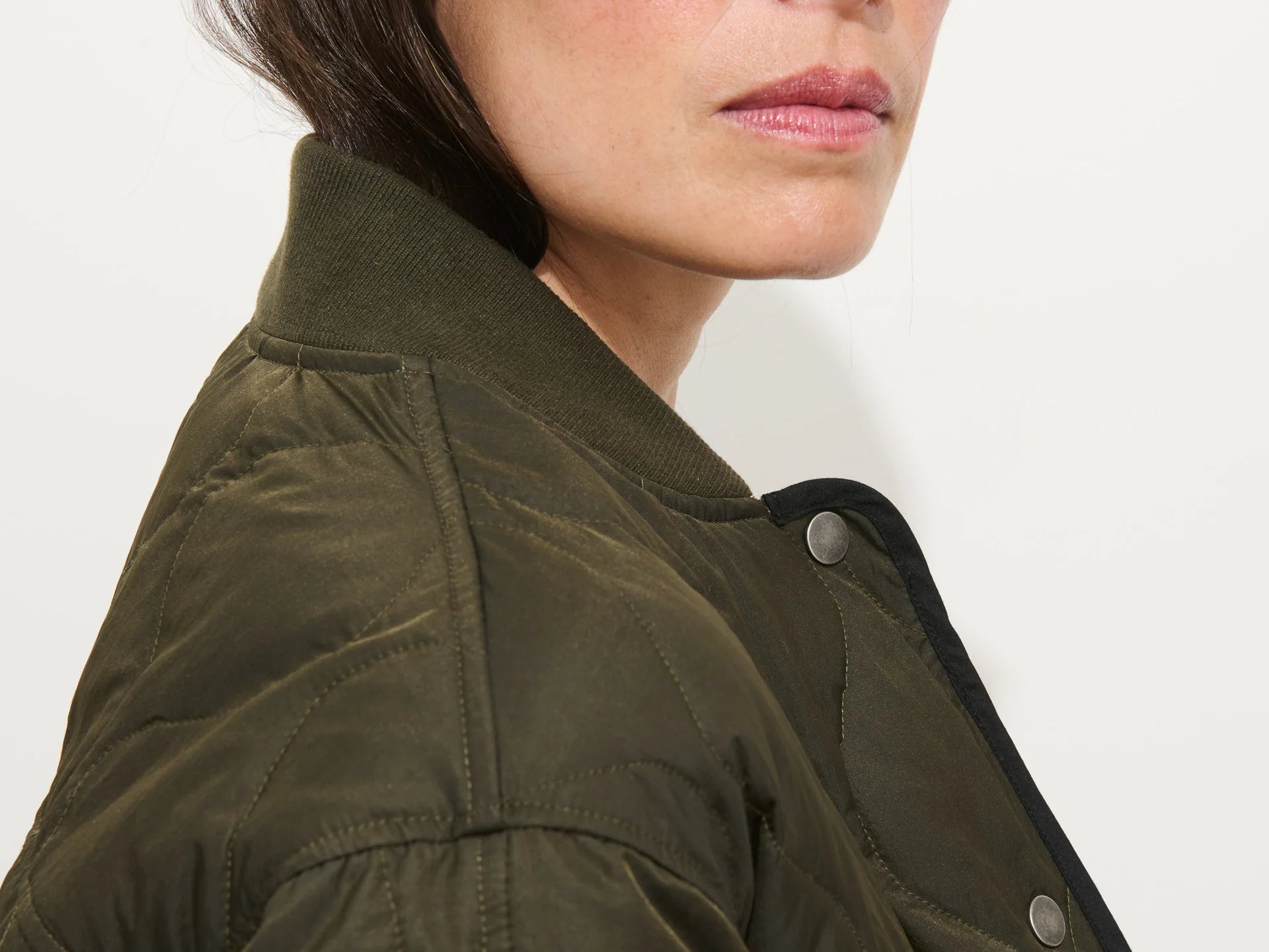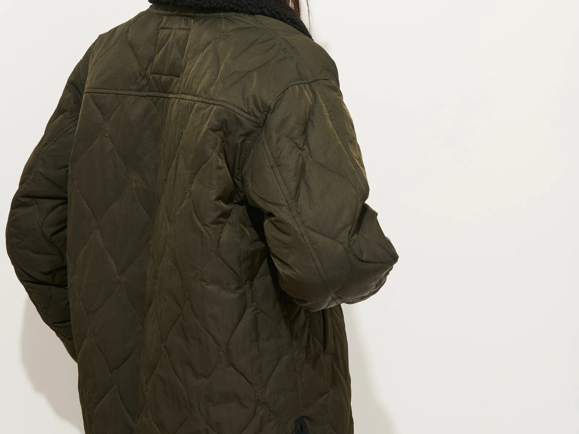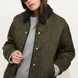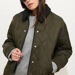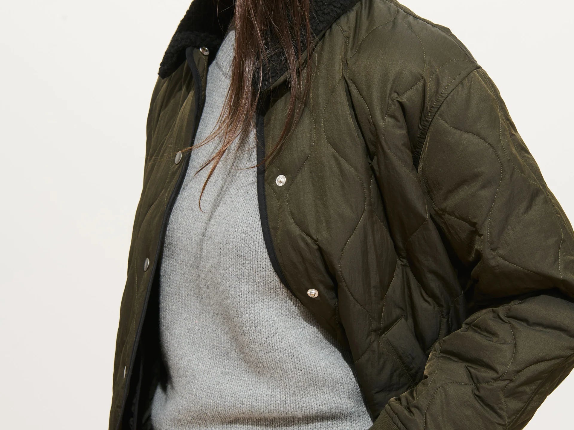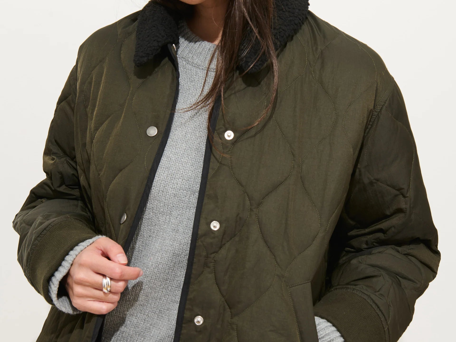The Anne Quilted Jacket is a versatile, everyday jacket that easily coordinates into your Fall & Winter wardrobe. Made with a quilted body for added warmth, snap closure placket and detachable sherpa collar. Model is 5'8" and is wearing the size Small. Fits true to size for a relaxed fit.