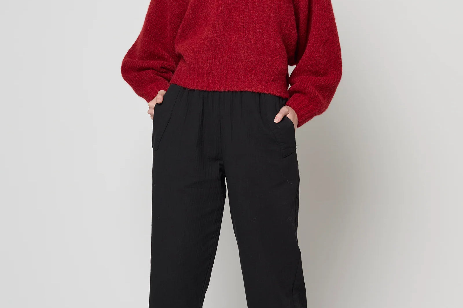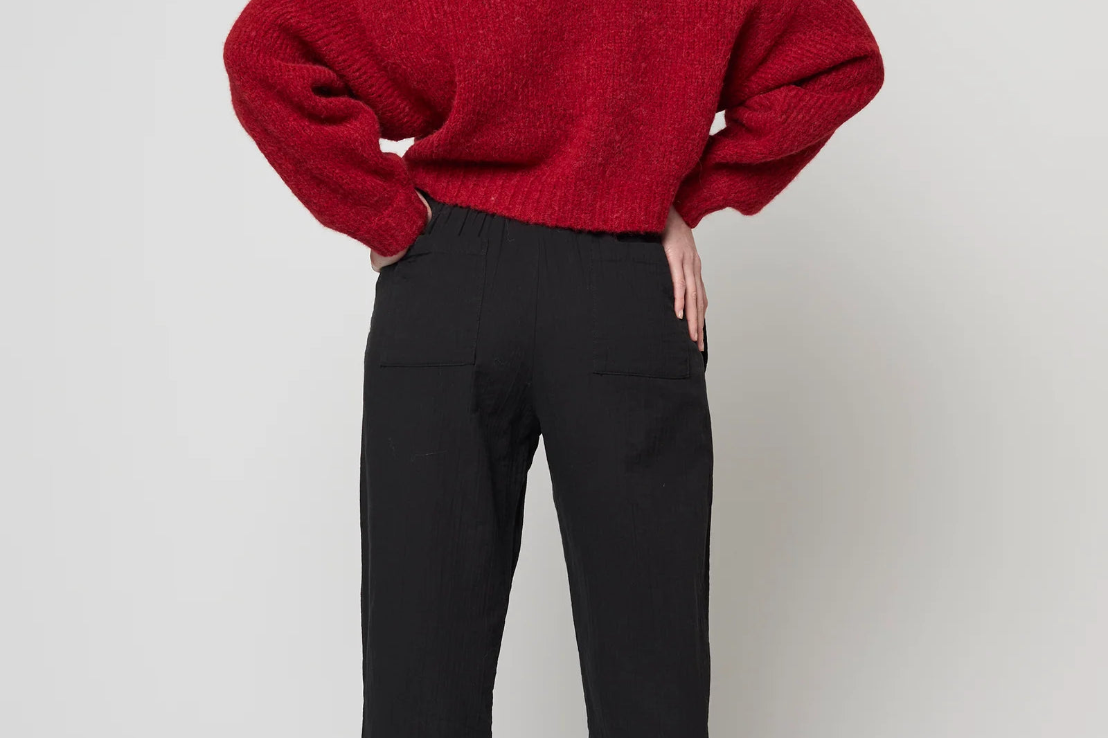 The Balloon Sleeve Sweater from Atelier Delphine is knit with superfine Peruvian baby alpaca that is warm & cozy, but also incredibly lightweight. The loose fit body hits right at the natural waist, and the open shoulder and large balloon sleeves add volume without bulk for an ultra flattering silhouette. Ribbed banding at the wrists adds a bit of tailoring & allows the sleeves to be pulled up as needed. This sweater fits true to size for a slightly oversized look.
