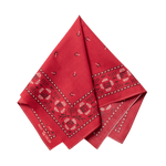 Inspired by Camel Brand Bandanas from the 1930-40s, a rare sub-brand of Elephant Brand Bandanas. One Ear Brand has made a thoughtful reproduction of a handful of the original designs and given them a new, high-quality twist for bandana enthusiasts to enjoy again. Carefully printed on 100% selvedge cotton fabric and sized in a 50cm x 50cm. A smaller version that One Ear Brand typically does not offer, as a nod to the original. Washing is recommended before use for best results and softness. Hang Dry.
