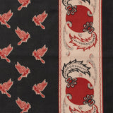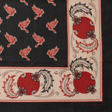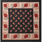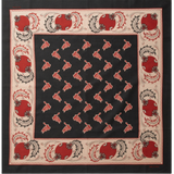 Inspired by bandanas from the 1860s to 1880s, One Ear Brand uses the highest quality of standards for each bandana. Hand printed onto 100% cotton selvedge woven fabric, each one is individually stitched by a skilled operator using an off white border to stay true to the bandanas in 1800s fashion. This bandana features a striking design inspired by a turkey red bandanna. The original had a bird motif in the middle and these little feather ornaments on the outside. The designers at One Ear Brand wanted to change the center motif to something more easily recognizable -cardinals. Entirely redrawn from the original, all the details have been changed and everything is original. Consider this design a sort of modern antique.