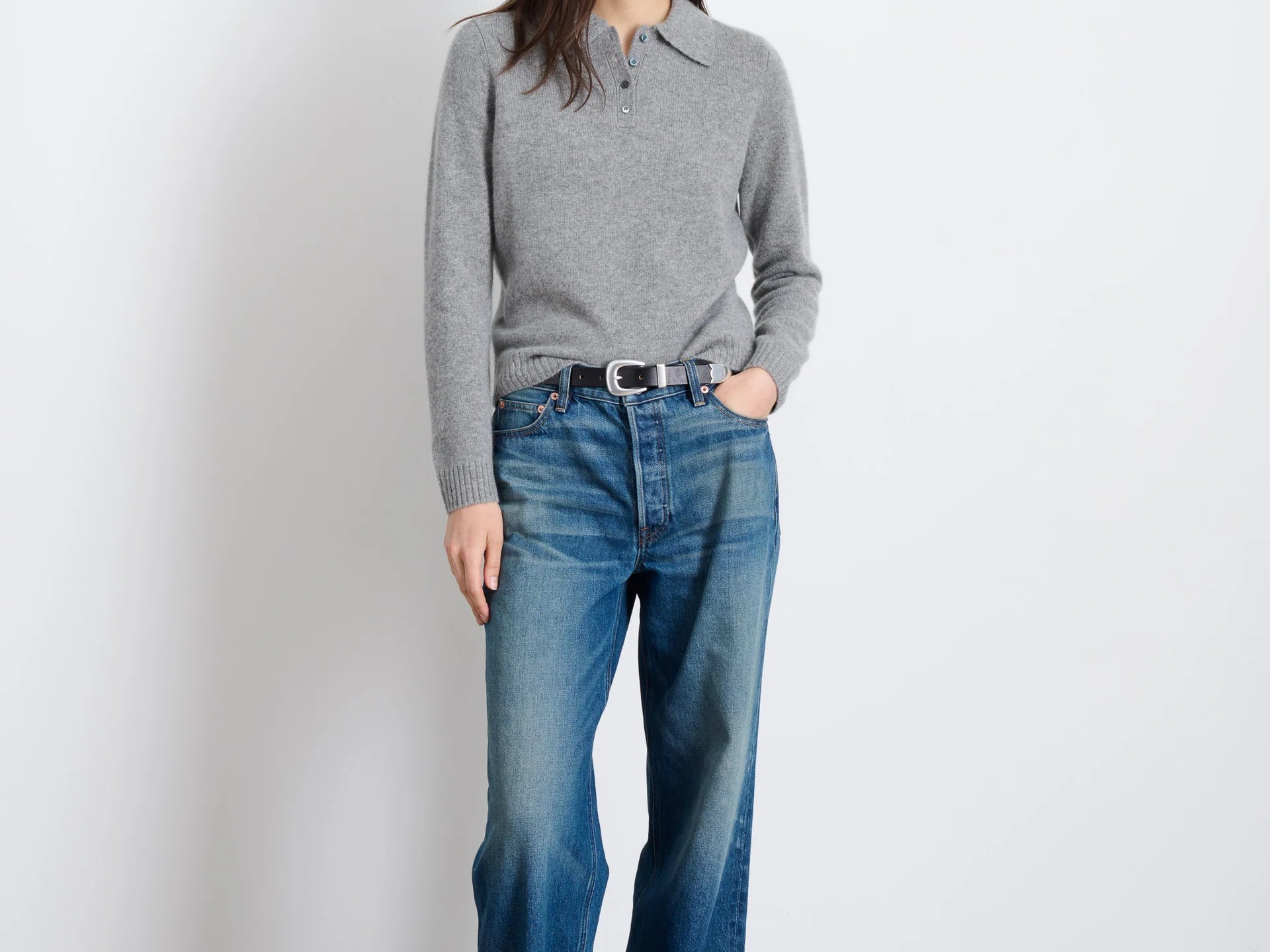 - Cashmere long sleeve polo sweater