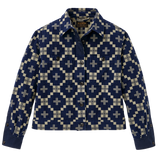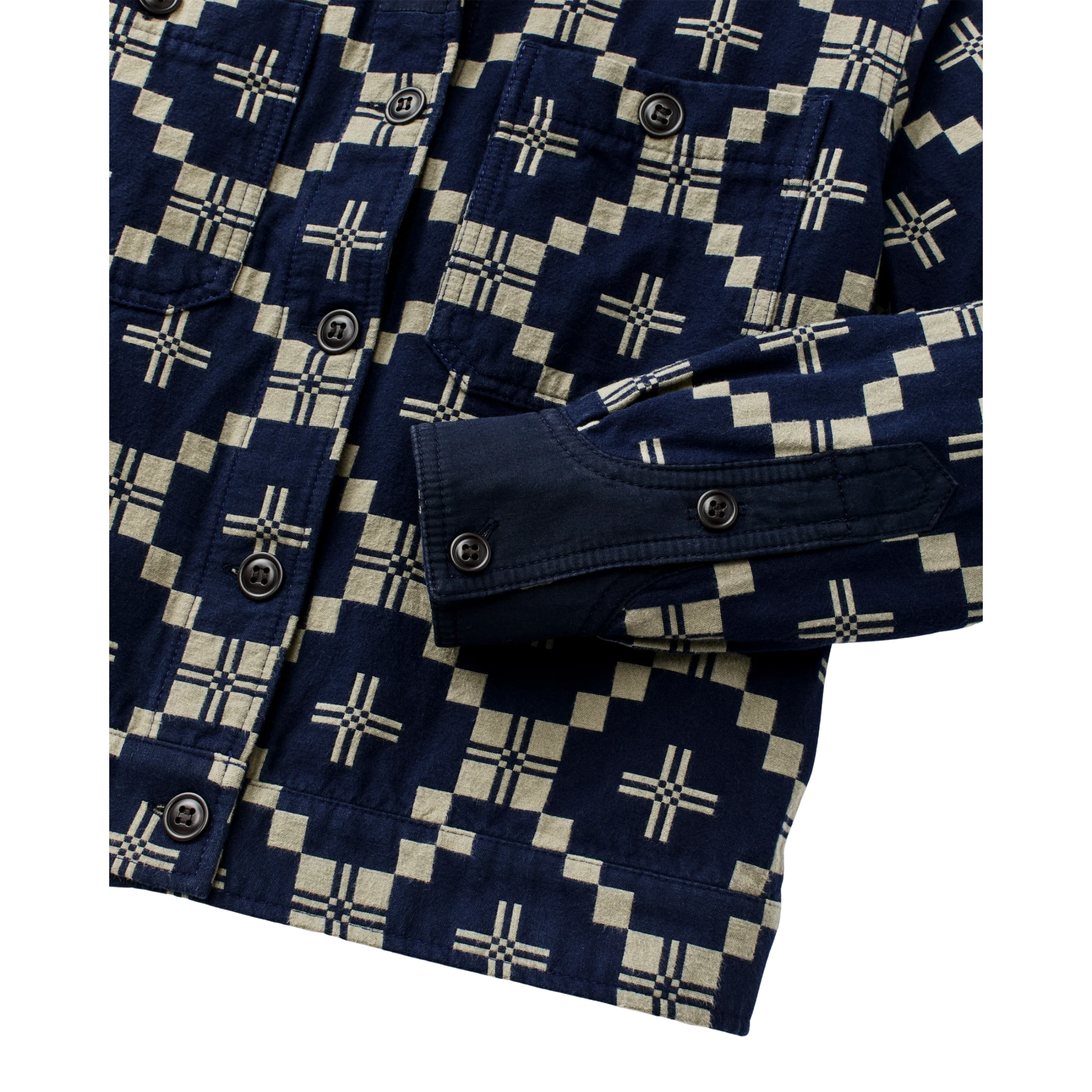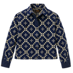 The women's Colchuck Short Jacket from Filson is a waist-length layer designed for comfort in shifting spring weather. Made from 9-oz. cotton double cloth that's brushed for softness. Woven with a jacquard-woven graphic pattern. detailed with a button-front closure and adjustable hem provide a versatile fit, while contrasting fabric at the plackets adds a refined detail. Cut short for ease of motion, and clean lines, it transitions easily from weekday wear to weekend travel.