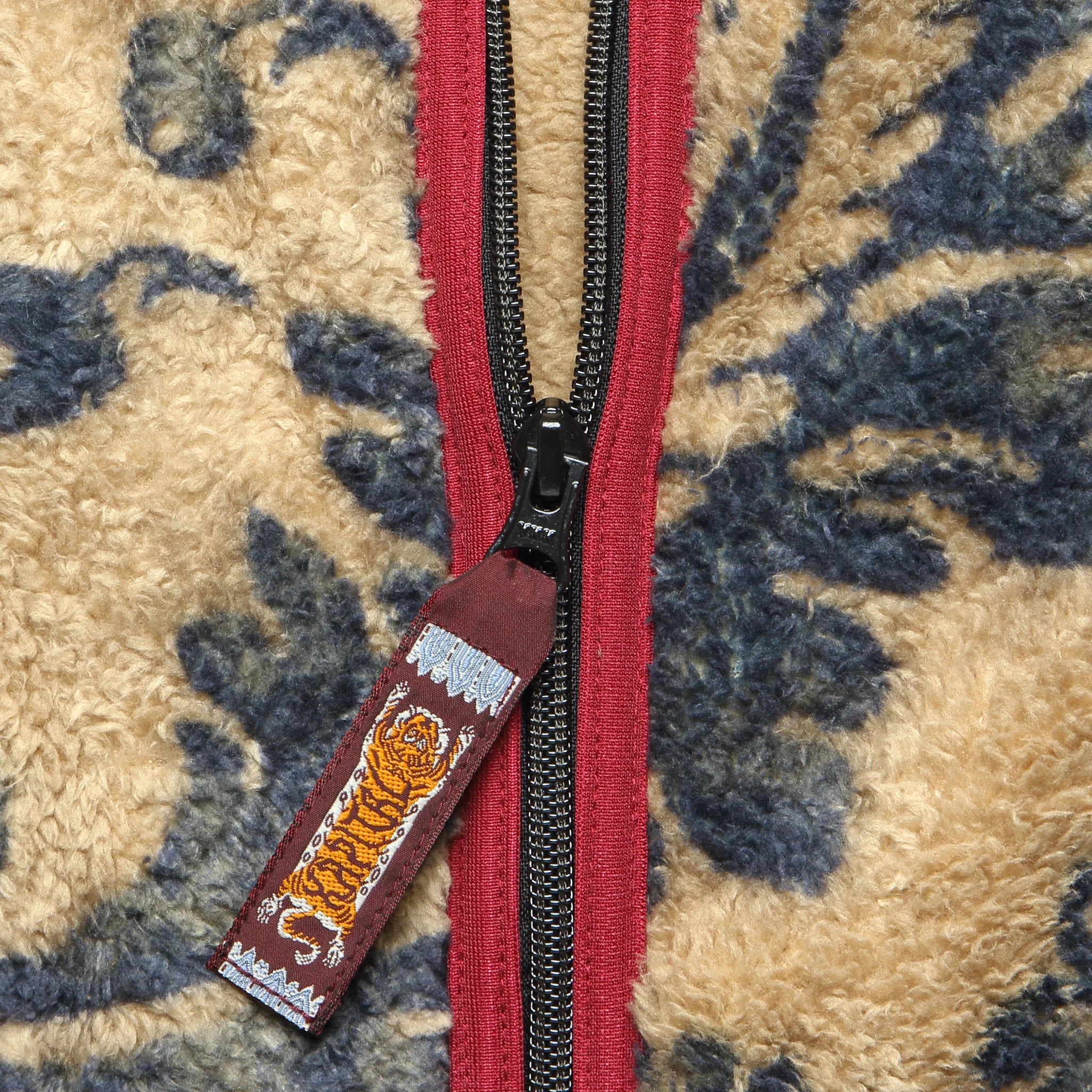 The Damask Fleece Zip Blouson from Kapital is crafted from a high-pile, ultra-soft polyester boa fleece that’s been printed with a vibrant paisley pattern throughout and cut with a relaxed, boxy fit that’s perfect for layering. It features outdoor-inspired details like custom woven Tyrolean taping around the collar, elasticated binding at the hem, cuffs, and placket, and a pair of zipped hand warmer pockets to keep those mitts nice and toasty.