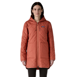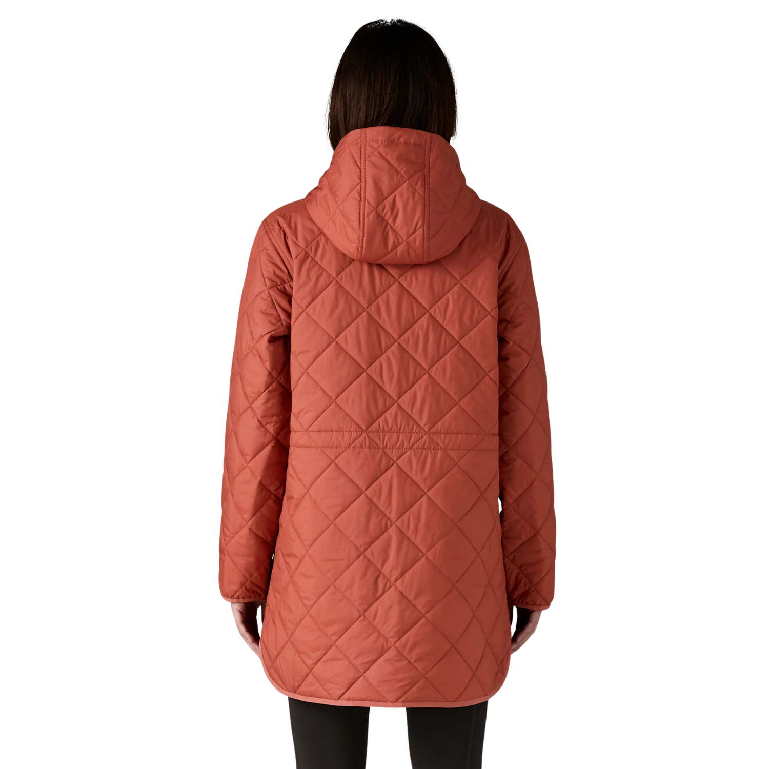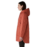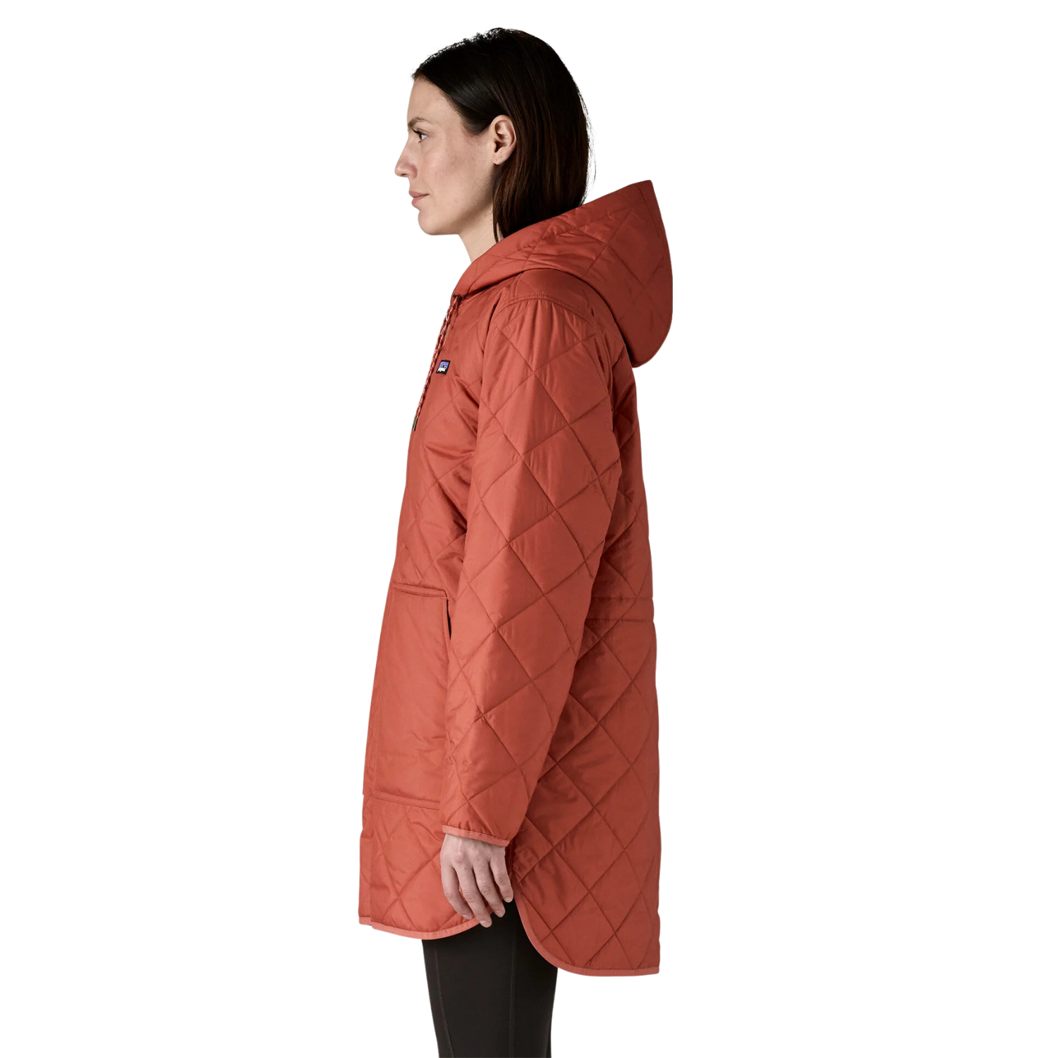 The Diamond Quilted Parka from Patagonia is a great, everyday coat that will keep you warm & cozy, pack up small and is ideal for traveling. Designed with a longer silhouette to cover the hips and features a hidden drawcord at the lower back for a flattering silhouette. Made from 100% recycled polyester taffeta with a durable water repellent finish and an insulated, adjustable hood. The full-length, center-front zipper operates with a climbing-rope zipper pull that's easy to use even when wearing gloves. Insulated with toasty 80-g Thermogreen® 100% recycled polyester; diamond quilting reduces bulk, increasing the compressibility and trapping heat. Finished with elasticized binding at the cuffs to keep warmth in and the wind out. Fits true to size for a relaxed fit. We recommend sizing down if you prefer a snug fit. Model is 5'9" and wearing size Small.