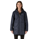 The Diamond Quilted Parka from Patagonia is a great, everyday coat that will keep you warm & cozy, pack up small and is ideal for traveling. Designed with a longer silhouette to cover the hips and features a hidden drawcord at the lower back for a flattering silhouette. Made from 100% recycled polyester taffeta with a durable water repellent finish and an insulated, adjustable hood. The full-length, center-front zipper operates with a climbing-rope zipper pull that's easy to use even when wearing gloves. Insulated with toasty 80-g Thermogreen® 100% recycled polyester; diamond quilting reduces bulk, increasing the compressibility and trapping heat. Finished with elasticized binding at the cuffs to keep warmth in and the wind out. Fits true to size for a relaxed fit. We recommend sizing down if you prefer a snug fit. Model is 5'9" and wearing size Small.