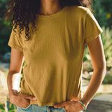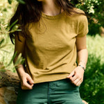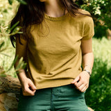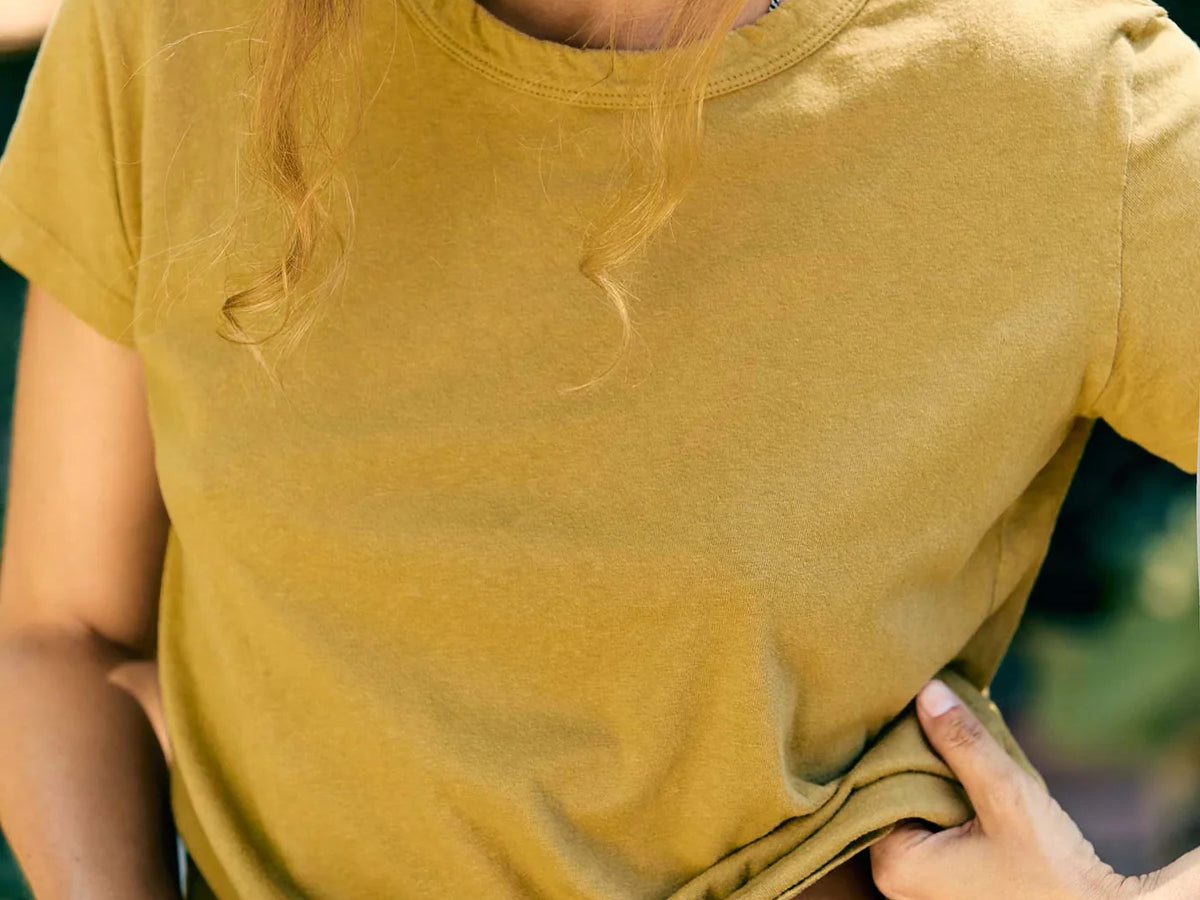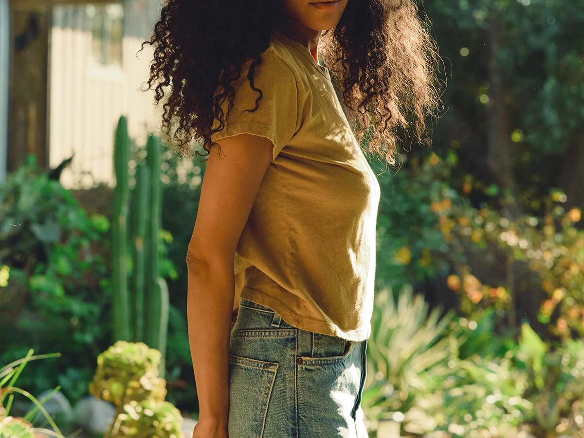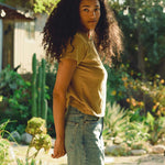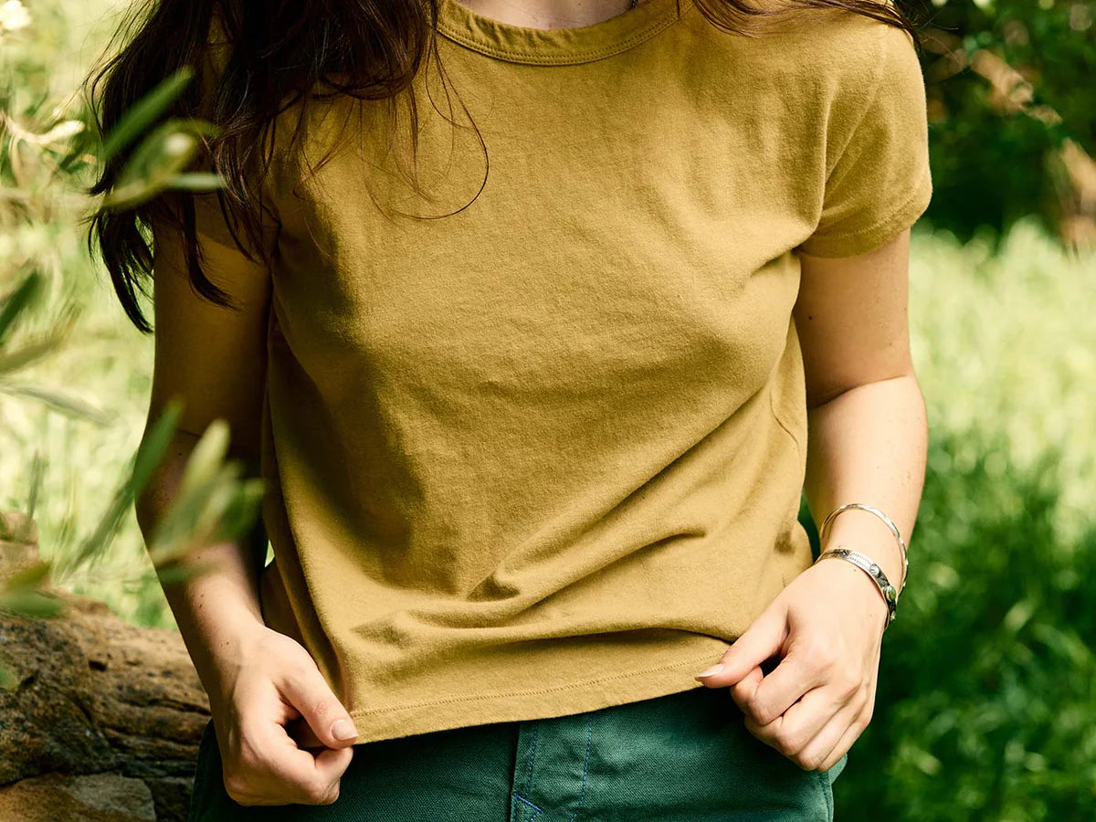 A Staff Favorite! The Imogene + Willie Drop Tee is an update to a traditional women’s crew and great for everyday or when you need a slightly dressier Tee. Made of super soft 100% cotton knit that’s been washed for a vintage feel. Designed with a slightly relaxed silhouette that is fitted around the bust, falling straight through the torso. the perfect length for high waisted bottoms that isn't too long or cropped. Fits true for a relaxed fit. Patterned, cut, and sewn in the USA from a 100% cotton American-made fabric.