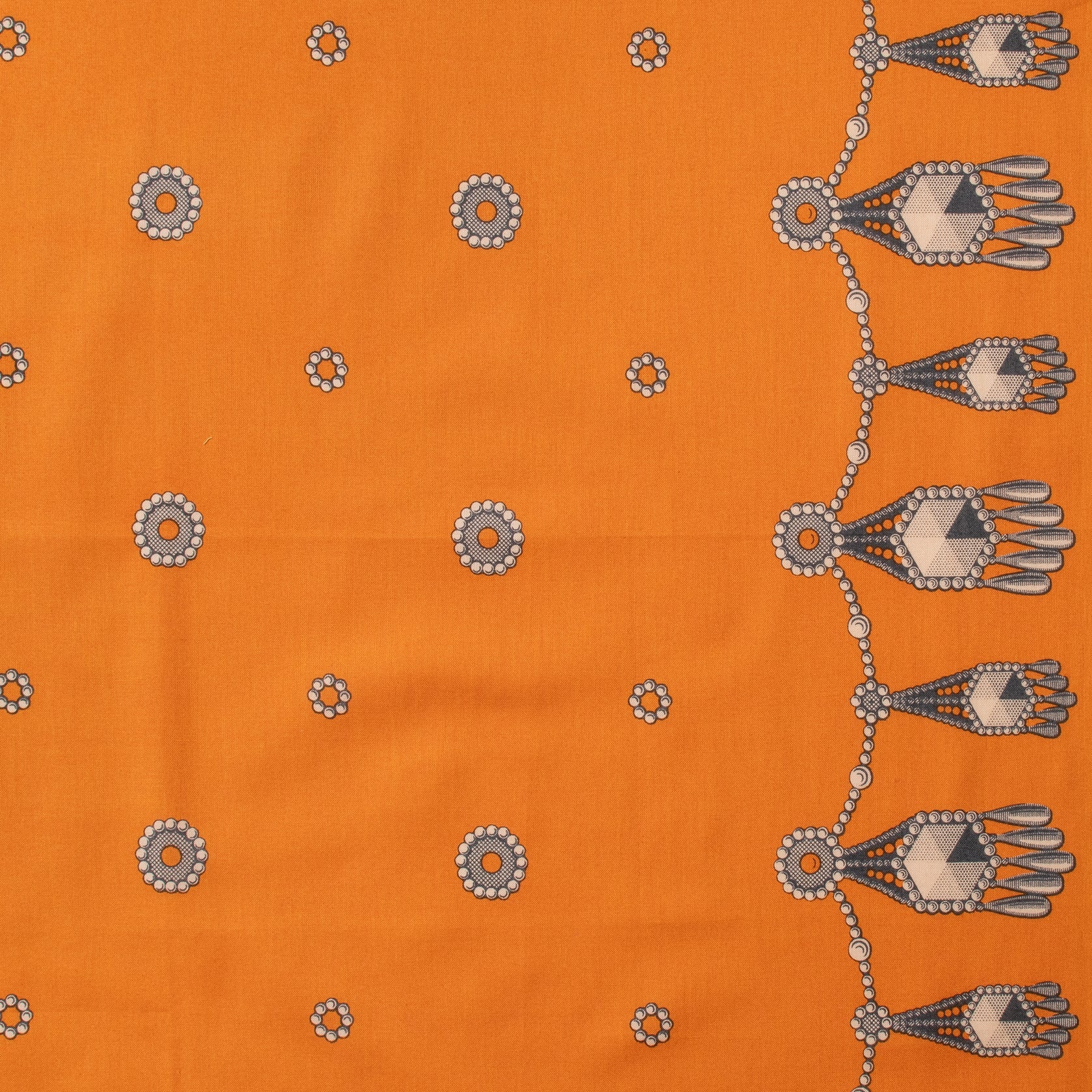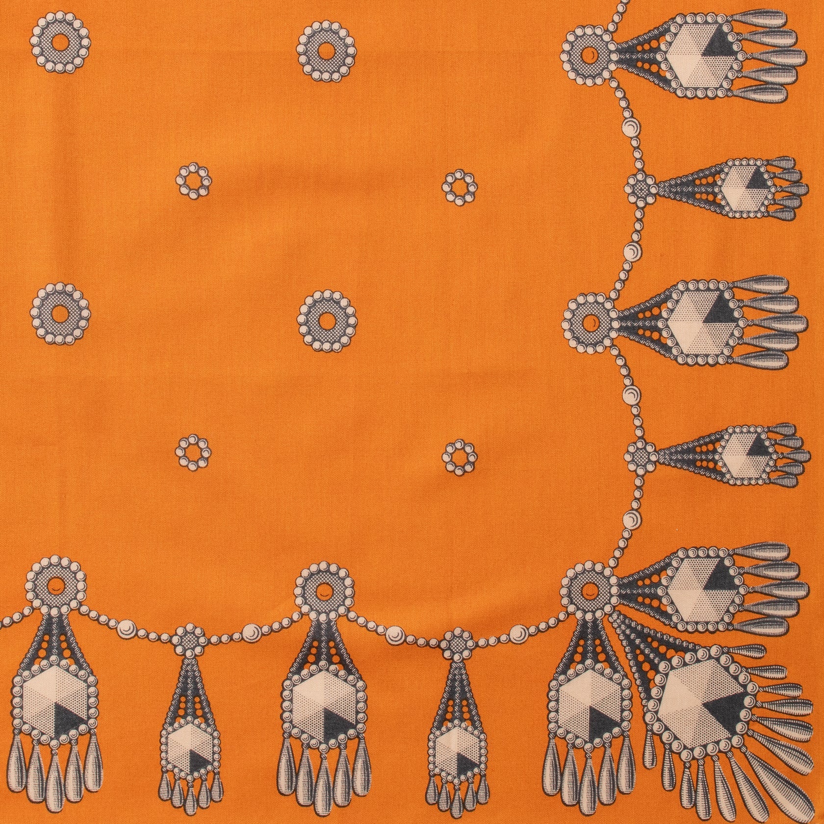 The Filagree XL Bandana from One Ear Brand is a replica from a rare, unusual vintage bandana from their archives. The tangerine orange is a great example of the popular colors present in 1920s Europe, specifically France, a nod to the long history of bandana production. Hand printed onto 100% cotton selvedge woven fabric, each one is individually stitched. Washing before use is recommended to soften product. Hang Dry.