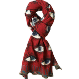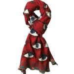 The Speakeasy Wool Scarf from Kapital features a colorful, all-over pattern of batting eyes. and long lashes. This piece has the perfect balance of weightless warmth. Unlike other wool scarves, this scarf is super soft and comfortable against the skin. The lightweight textured gauze is easily wrapped like a shawl, bundled up around your neck, or even thrown over a couch to use as a light blanket.