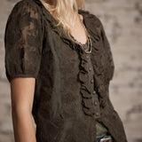 Jenn Embroidered Lace Top - Deep Loden