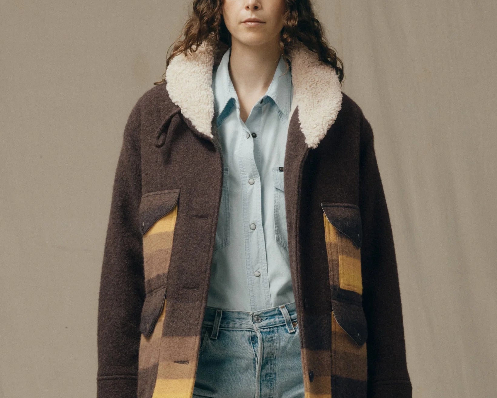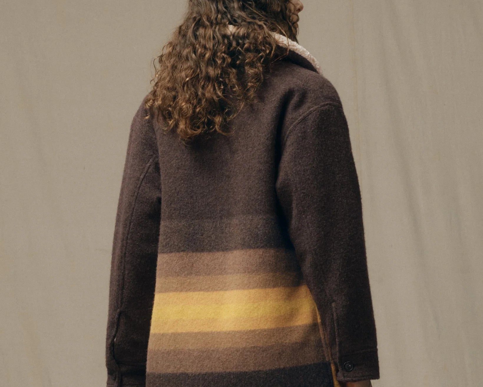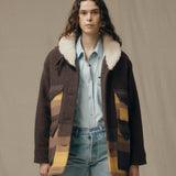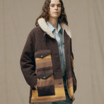 Kodiak Shawl Collar Coat - Brown/Yellow Stripe