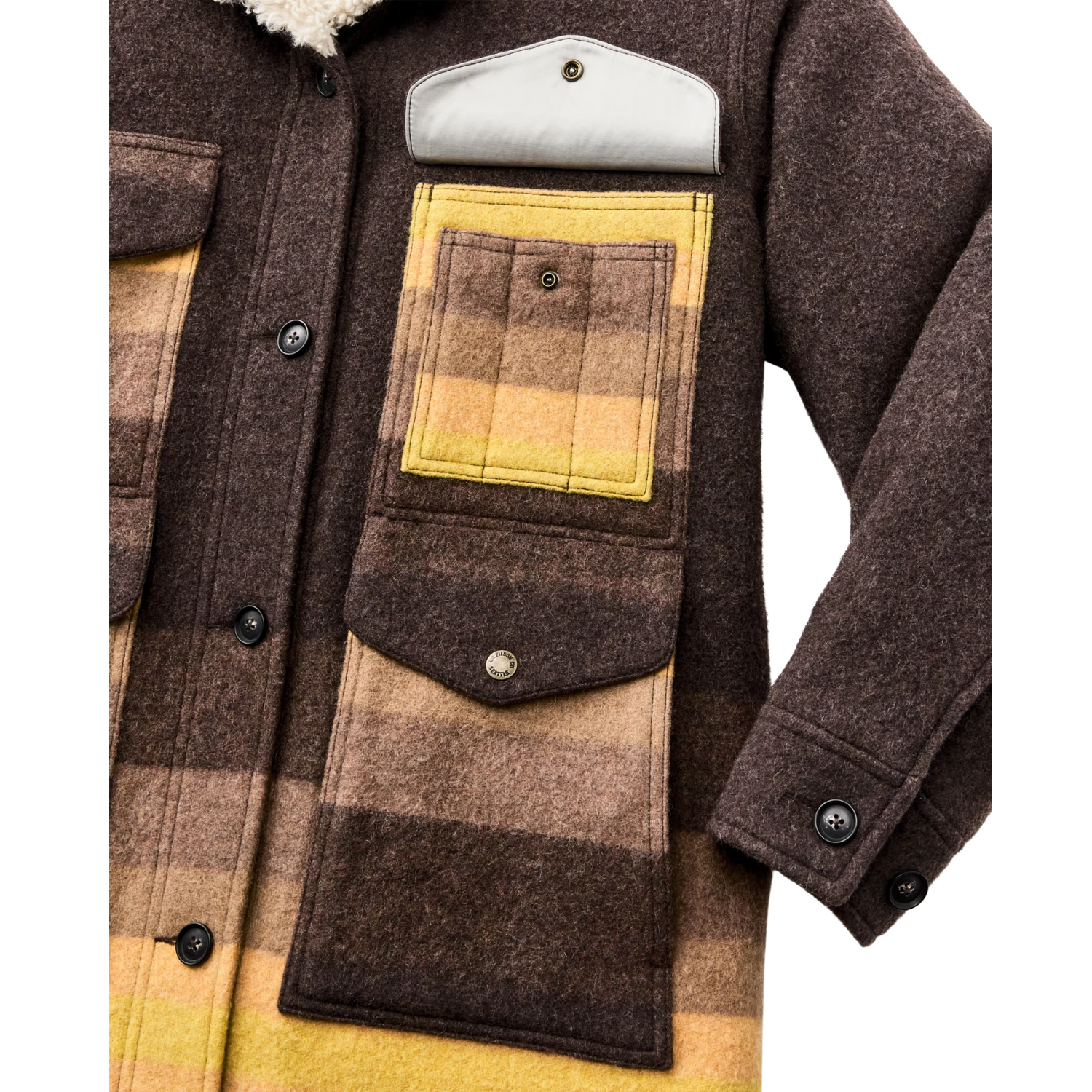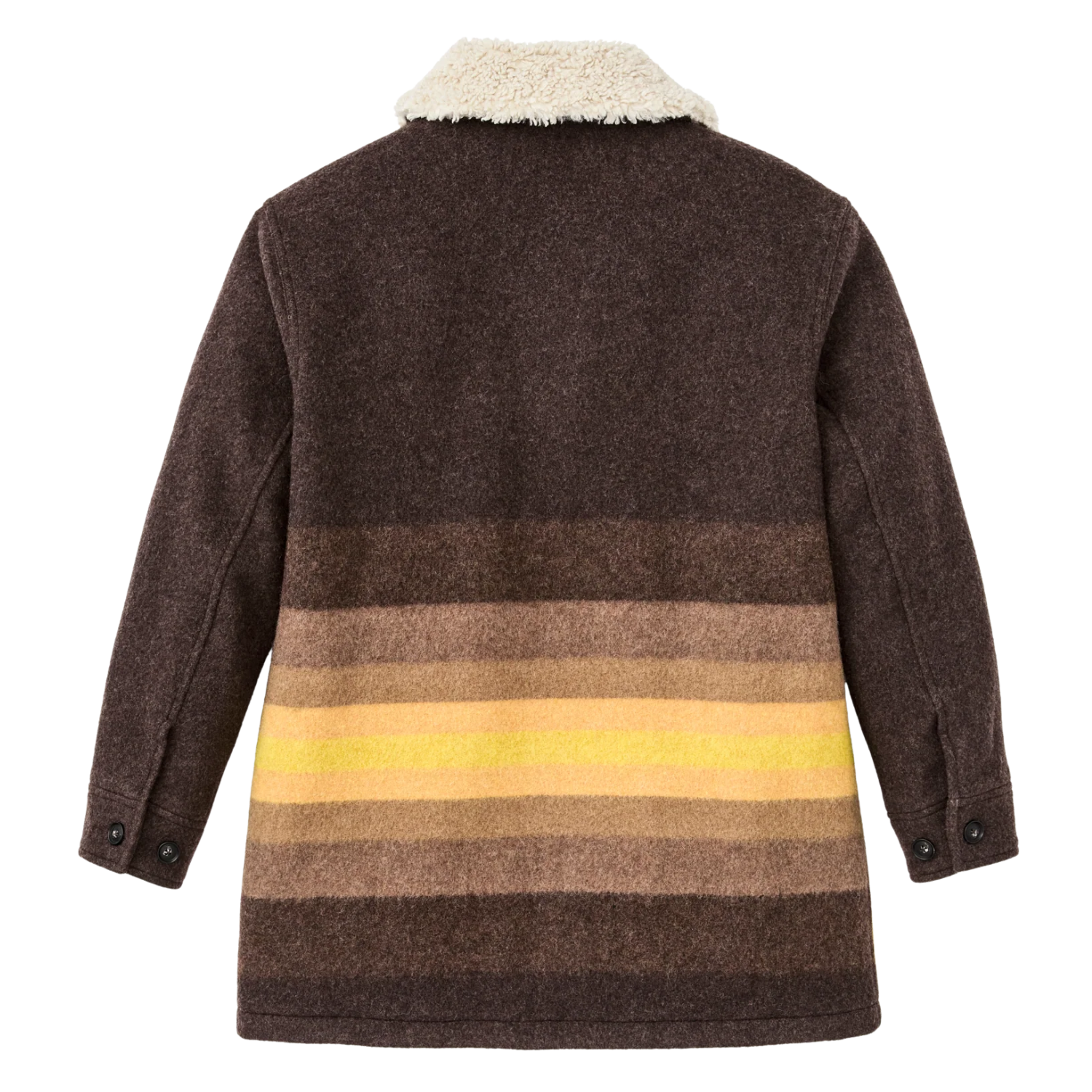 The Kodiak Shawl Collar Coat's is based on a rancher's coat from Filson's archives. Built with a comfortable wool blend that blocks wind, sheds rain and holds warmth in the cold. The longer silhouette adds coverage, while the torso is lined with soft cotton flannel for comfort. The sleeves are lined with polyester twill so it slips easily over layers.The shawl-style fleece collar extends high to protect your neck and fastens at the throat when the wind picks up. Detailed with two front cargo pockets with snapped flaps keep essentials secure. Finished with a button-front closure and snap-adjustable cuffs. Made from a warm wool-blend. Nature’s best insulator: naturally water-resistant, breathable, and warm even when wet, delivering weather resistance and the durability to last generations. Fits true to size.