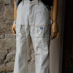 The Light Canvas Lumber pants are taken from the bottom portion of overalls to make an easy to wear everyday pant. An oversized silhouette with a waist that has an adjustable tab at the back. Detailed with a quilted kneepad and plenty of pockets throughout. Finished with triple-needle construction for longevity.