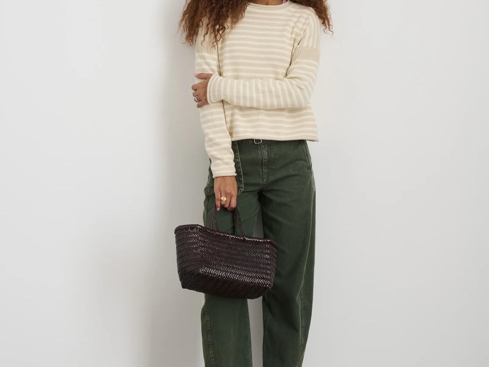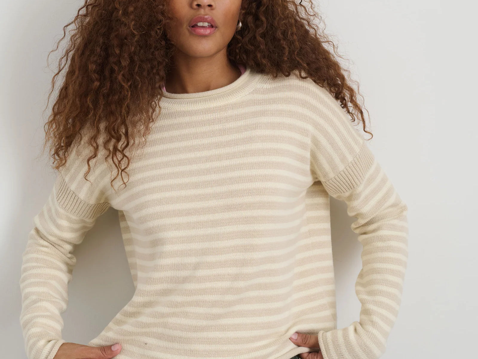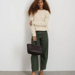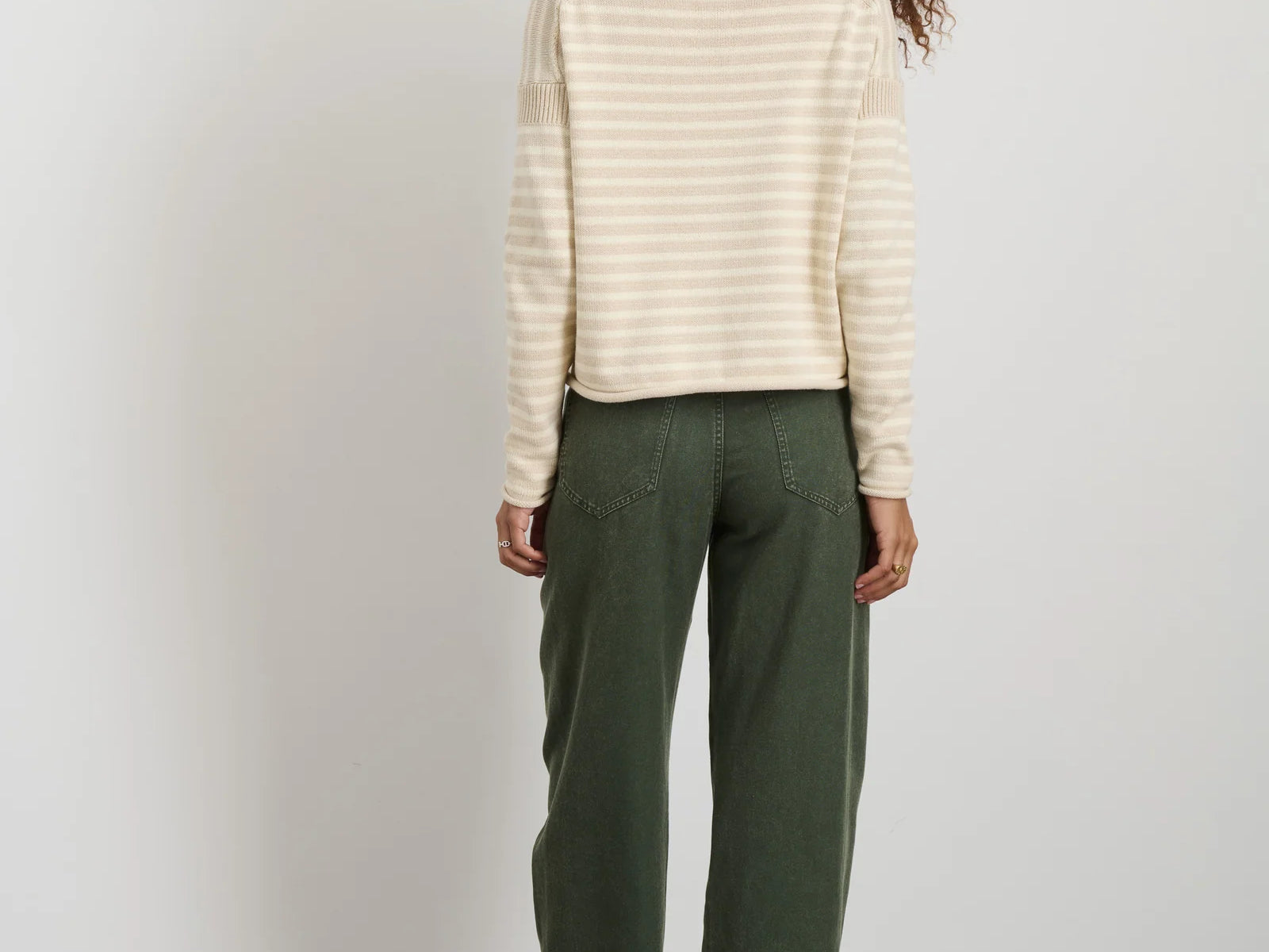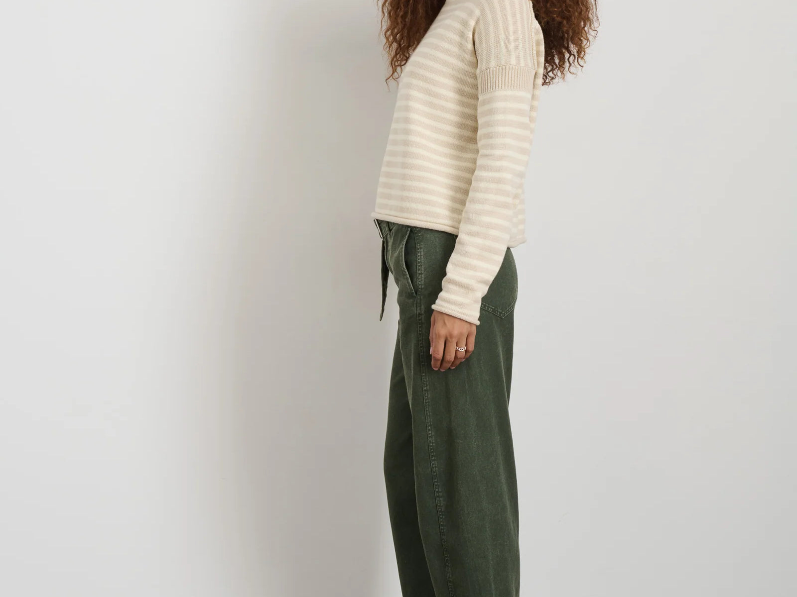 The Mariner Roll Neck Sweater from Alex Mill is made from 100% cotton that has a soft, cozy feel making it the perfect layering piece. Designed with a flattering drop shoulder, straight hem and an overall relaxed fit. Finished with a roll neck and wrist. Model is 5'11" and wearing a size Small. Fits true to size for a relaxed fit.