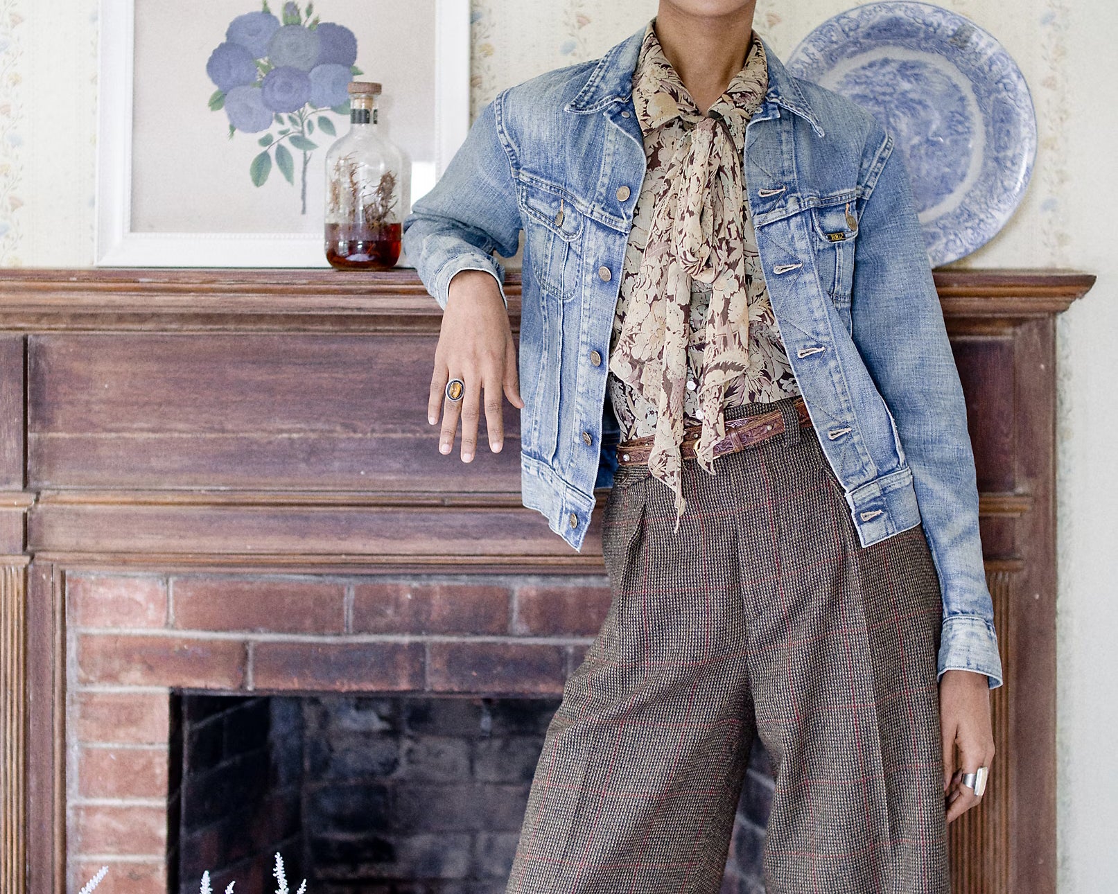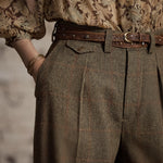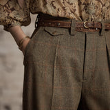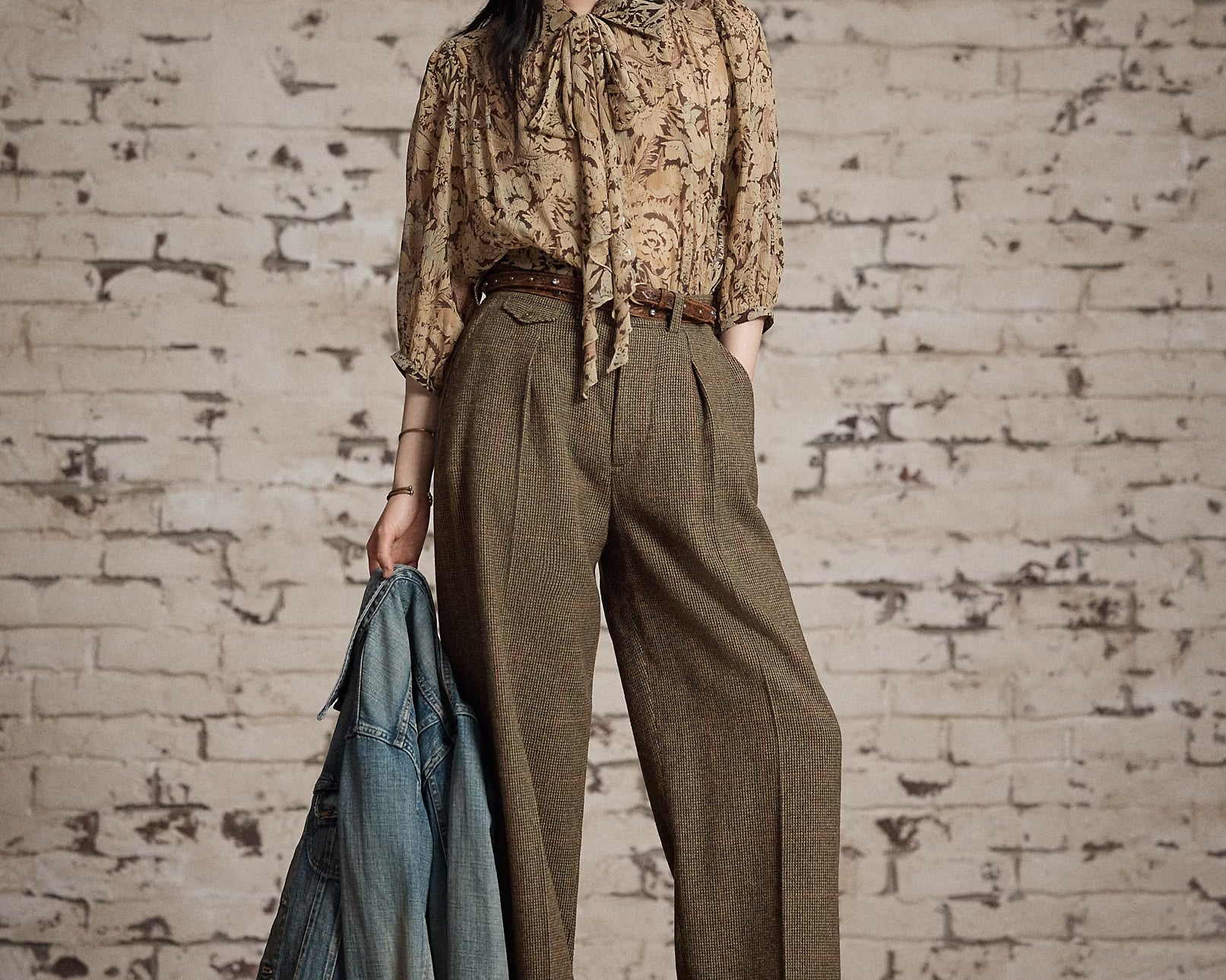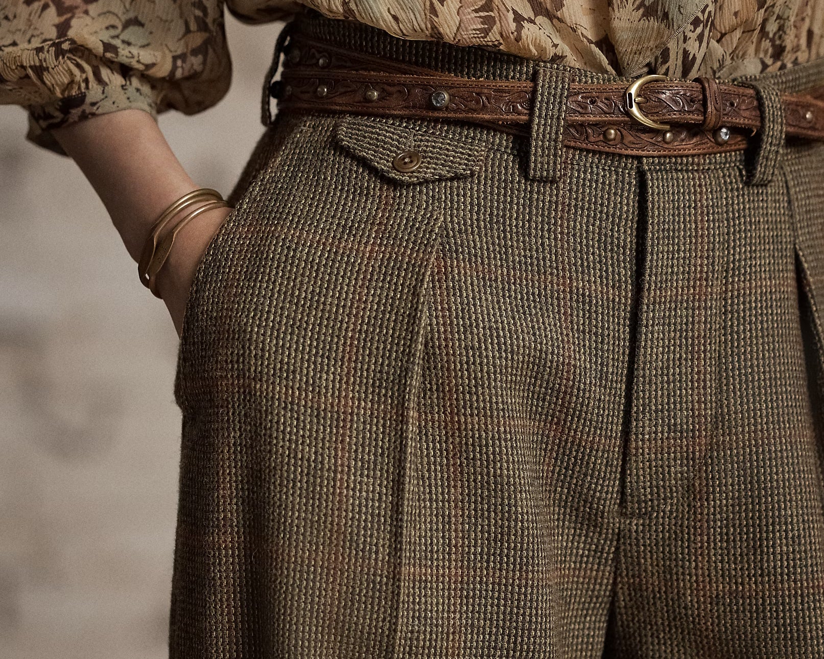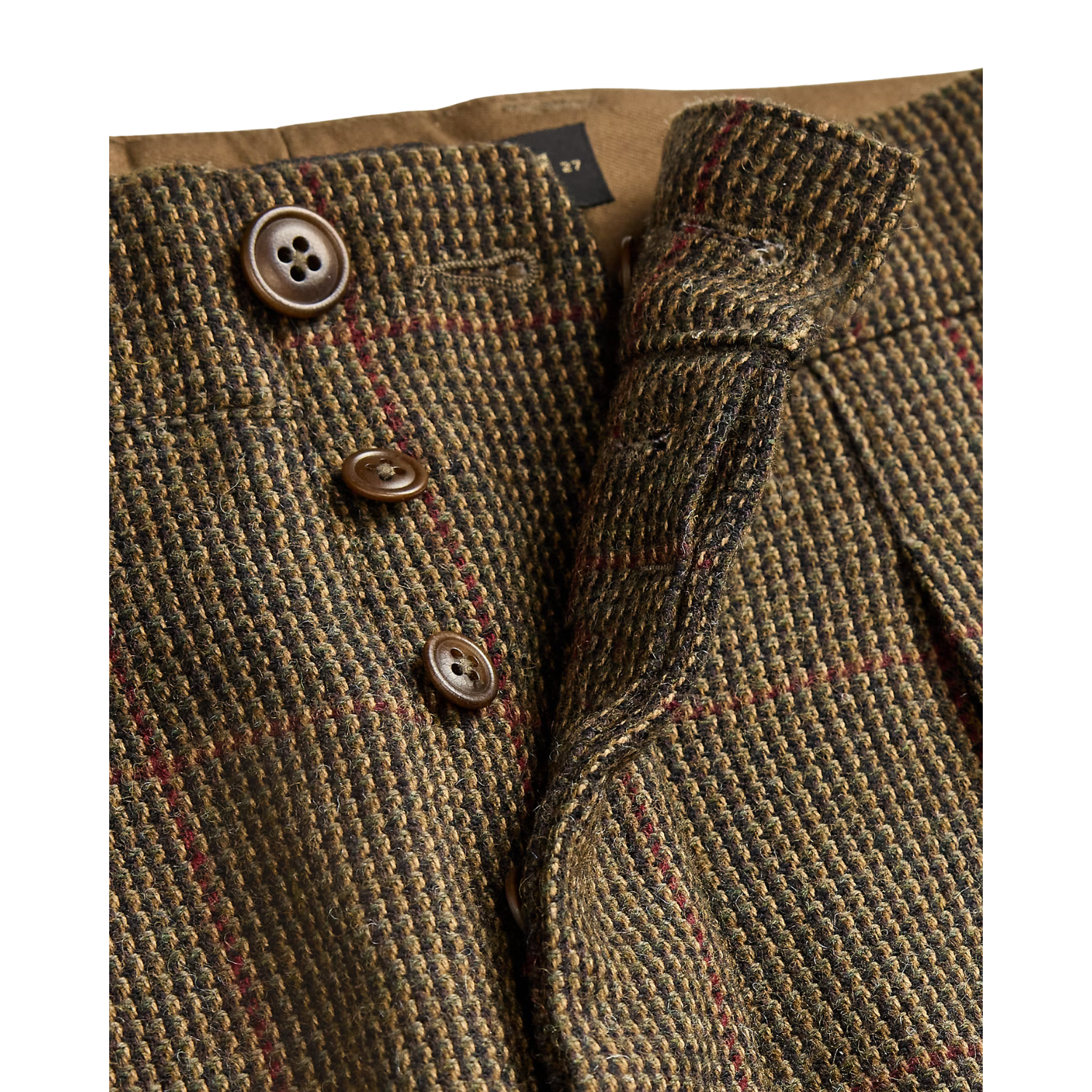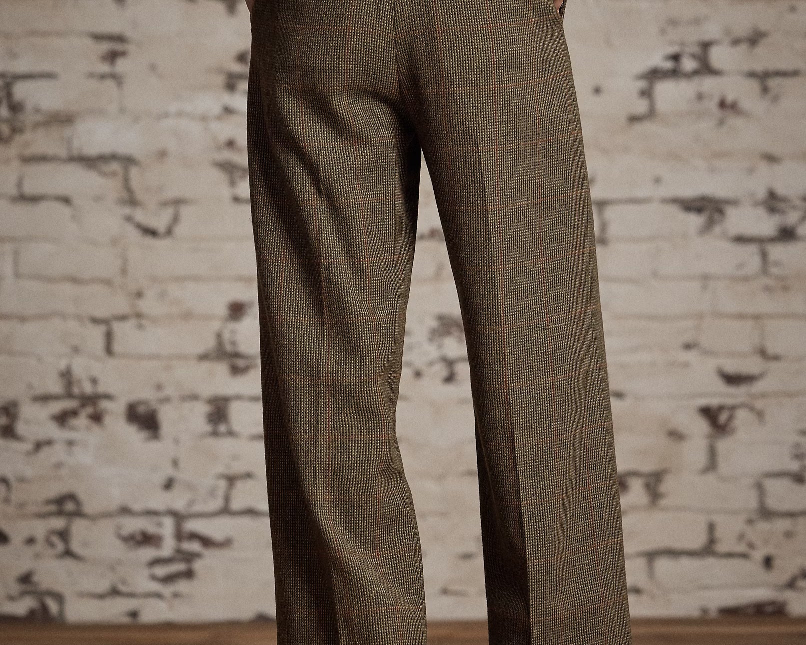 The Murphy Tweed Trouser from RRL is a classic silhouette that is a special blend of wool and cotton cloth that has been custom-developed with a storied British mill. Designed with a pleated front, windowpane-patterned tweed and a flattering silhouette. The waist is accentuated by a full hip and thigh while the straight leg silhouette features a half-lining for optimal comfort. Detailed with a button fly, Corozo buttons, two angled pockets and a right hip ticket pocket. Model is 5'10" and wears a size 27. This style runs large, we recommend sizing down from your normal RRL size.