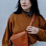 Nimes designs and creates bags using only the best Argentine vegetable tanned leather, sourced from the only sustainable tannery in the country. The Ombu Fannypack is made out of a pebbled oxide tone leather that will patina beautifully over time. The simple, yet modern design can be worn across the chest, around the waist or over the shoulder. Large enough to hold your phone, wallet, keys, and just about anything else you need on the go. This versatile bag is made to last a lifetime.