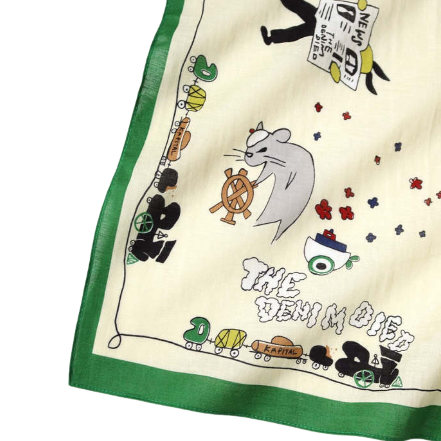 Produced in-house with specialty print & dye techniques, the design range of Kapital's bandanas are thoughtful & diverse. Each start with incredibly soft cotton fabric and are discharge printed with a wide range of iconography. These very special bandanas are completely proprietary designs, all indigo dyed & made in Japan.