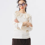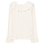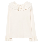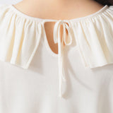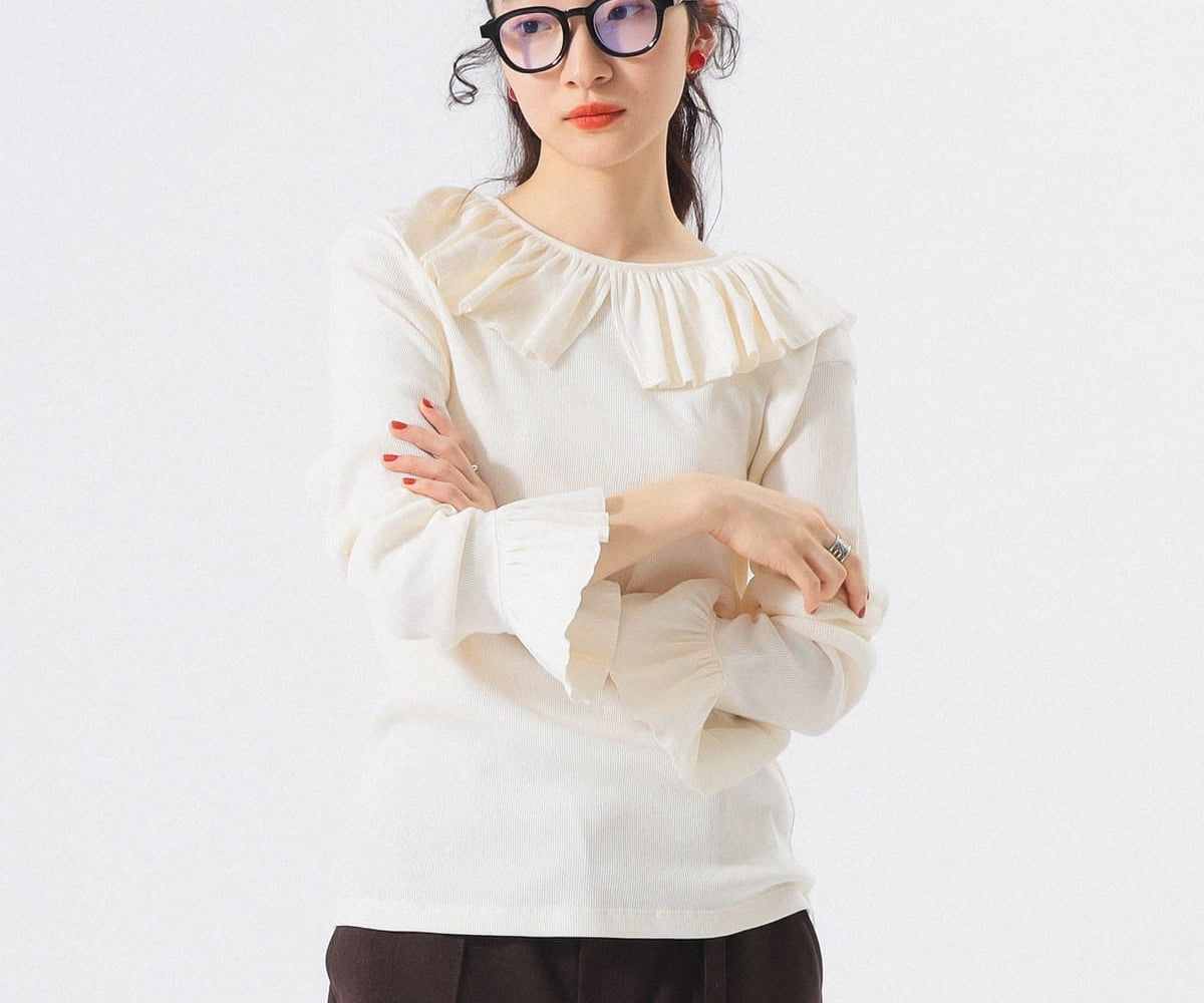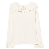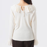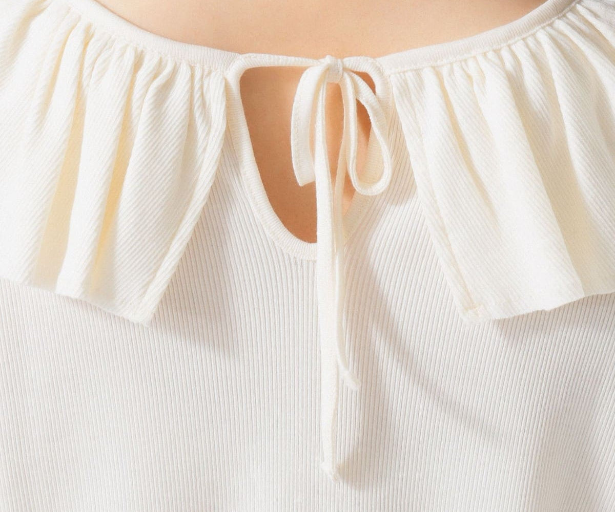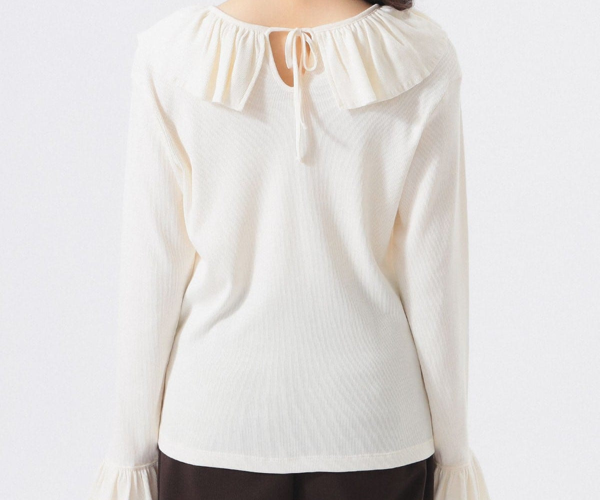 Rib Knit Ruffle Gathered Shirt - Ivory