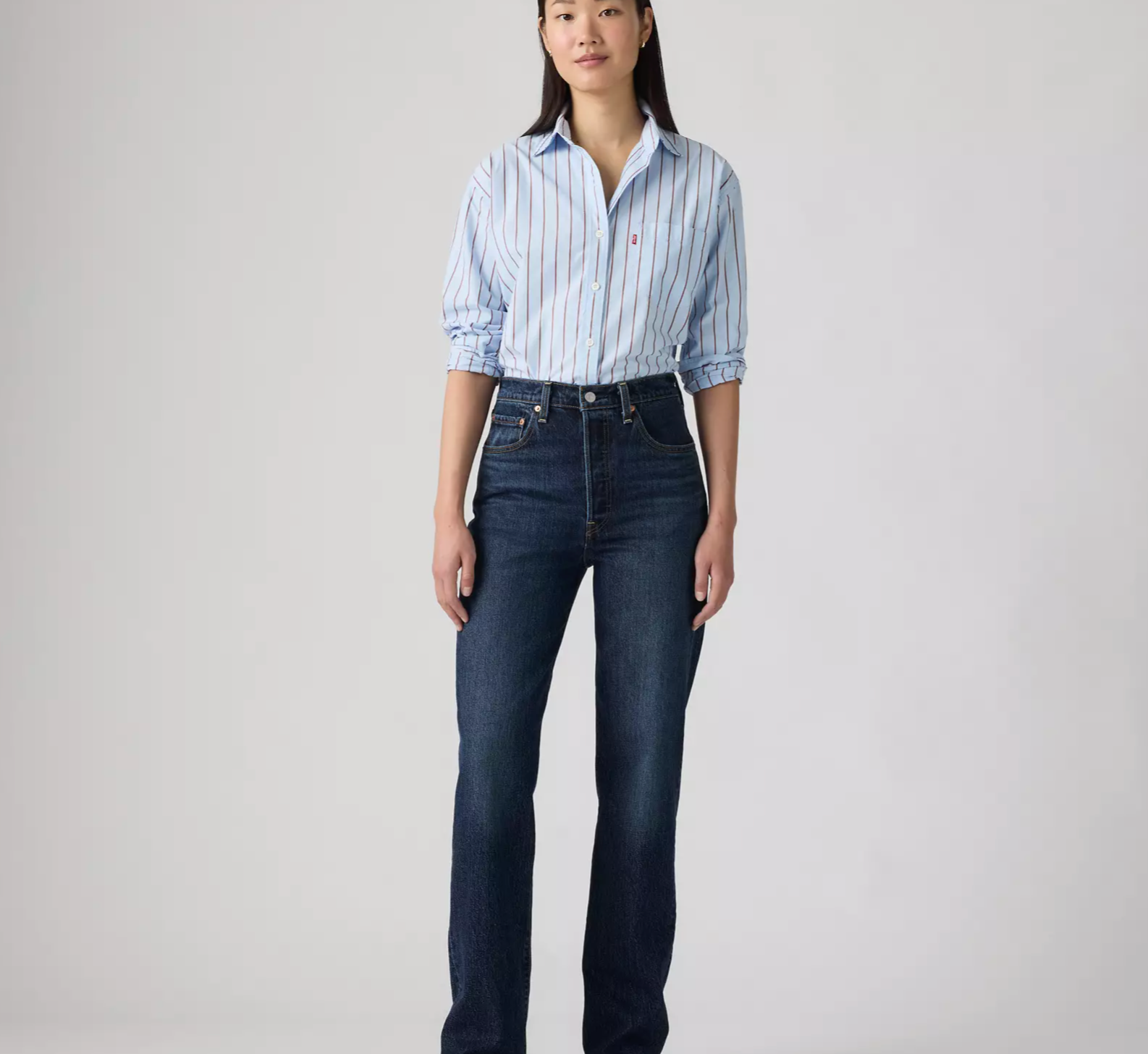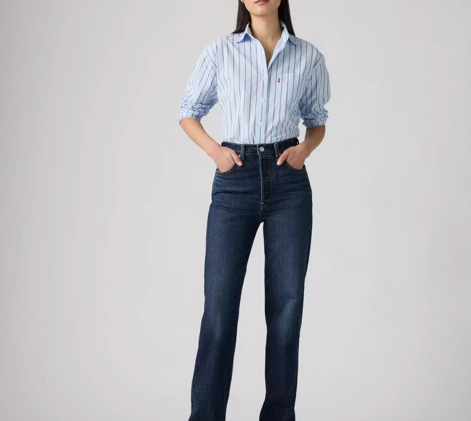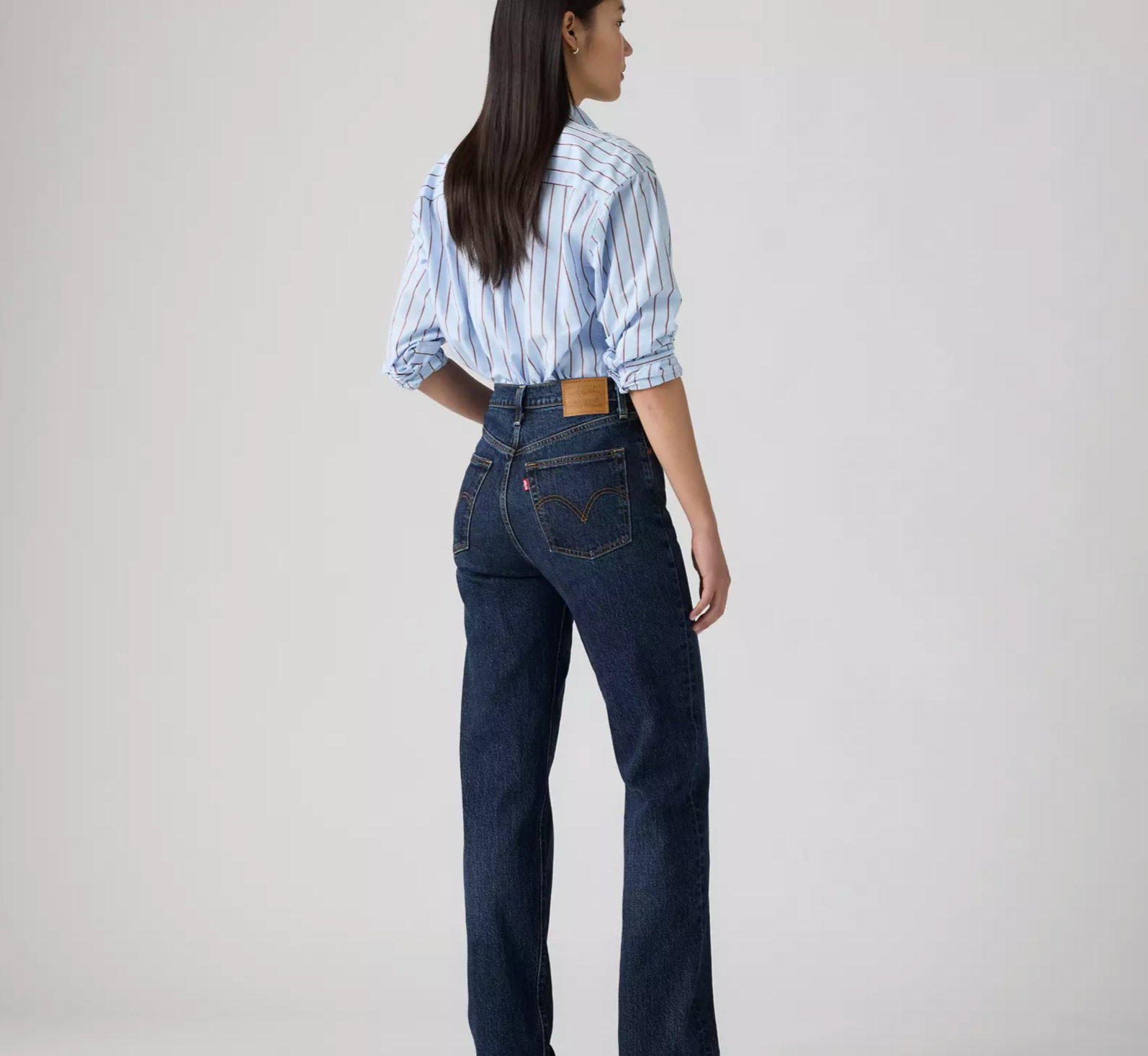 This Levi's Ribcage Straight Jean is a timeless, classic silhouette. Cut from sturdy cotton that retains its fit with several wears with a blend of 99% cotton and 1% stretch, this fabrication is the perfect mix for a little give where you need it without losing its shape. Styled with a straight, full 32" length, high waist and angled back pockets for the most flattering fit.