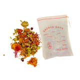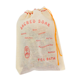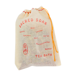 The Sacred Soak from High Sun Low Moon is a calming tea bath for the body made from soothing herbs. Beetroot is added to the blend turning bathwater a deep ruby color, to ignite the root chakra and our connection to Mother Earth. The Sacred Soak comes in a muslin sack for steeping in the bathtub. Handmade in small, monthly batches with a 2+ year shelf-life. Directions: Empty contents from the biodegradable sealed bag into muslin sack. Fix muslin sack to faucet so that bath water pours through tea bath as it fills tub.